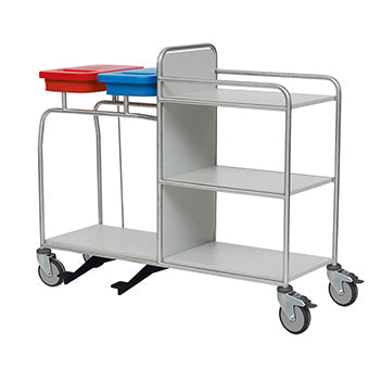 Dieser robuste Stationswagen bietet ausreichend Platz für den Transport von Gegenständen und ist aus langlebigem Edelstahl gefertigt.