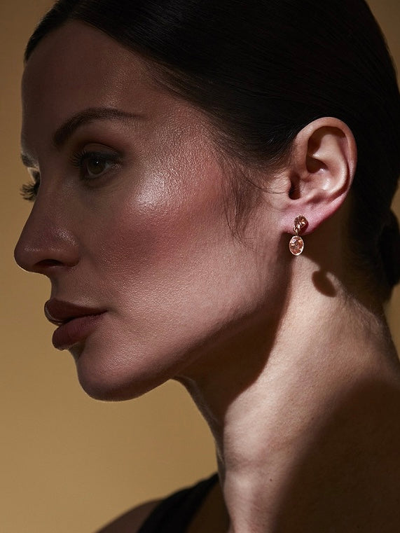 Dekorative Ohrhänger aus Messing in ovaler Form mit 2 eingefassten Glassteinen.