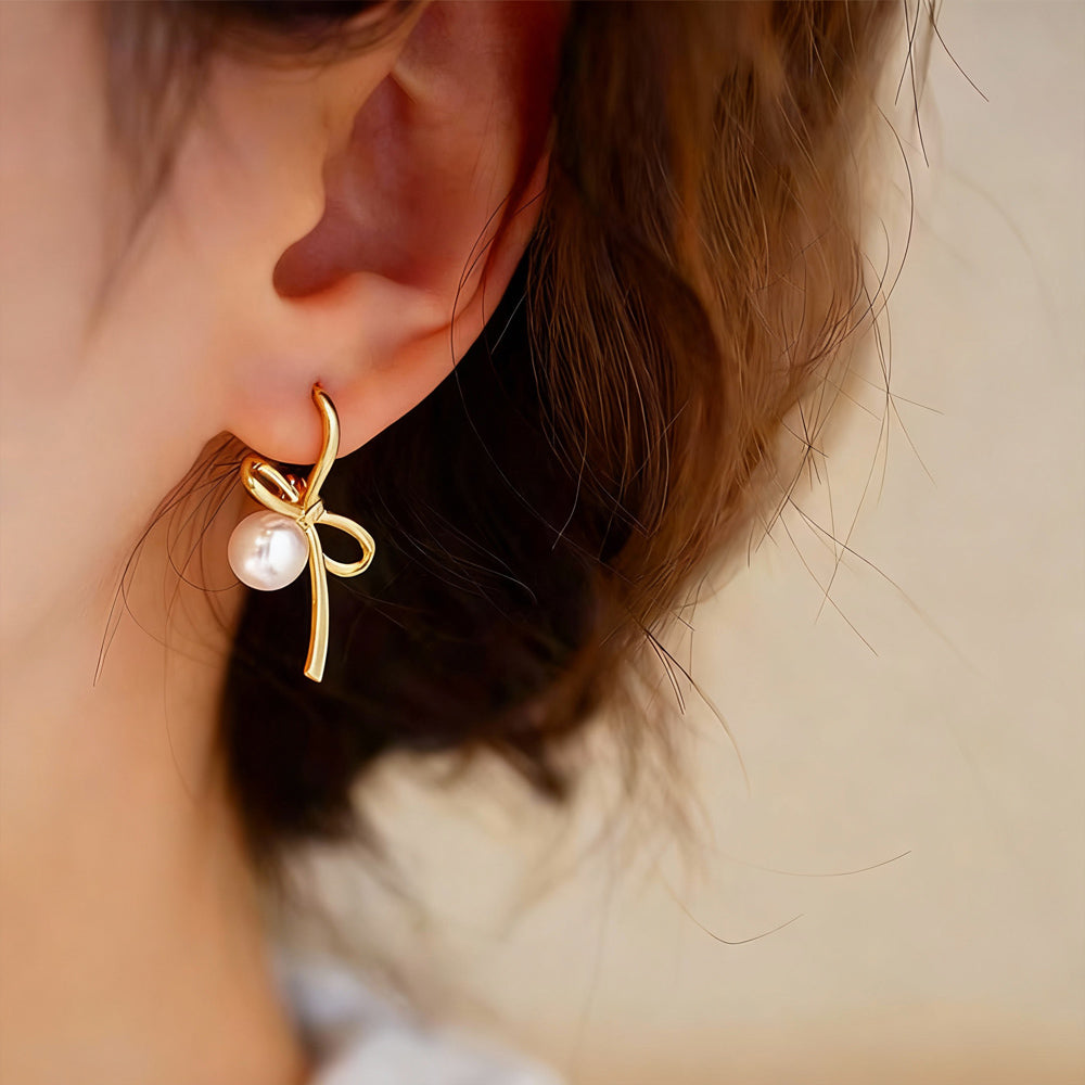 Ohrringe aus 925er Sterling-Silber, Creole mit Perle und Schleife