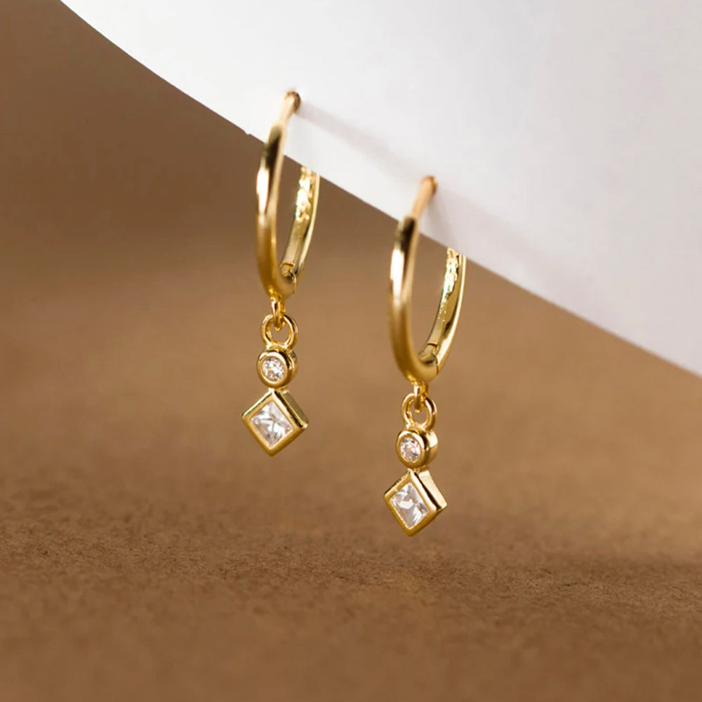 Ohrringe aus 925er Sterling-Silber, Kreis-Quadrat, 2cm