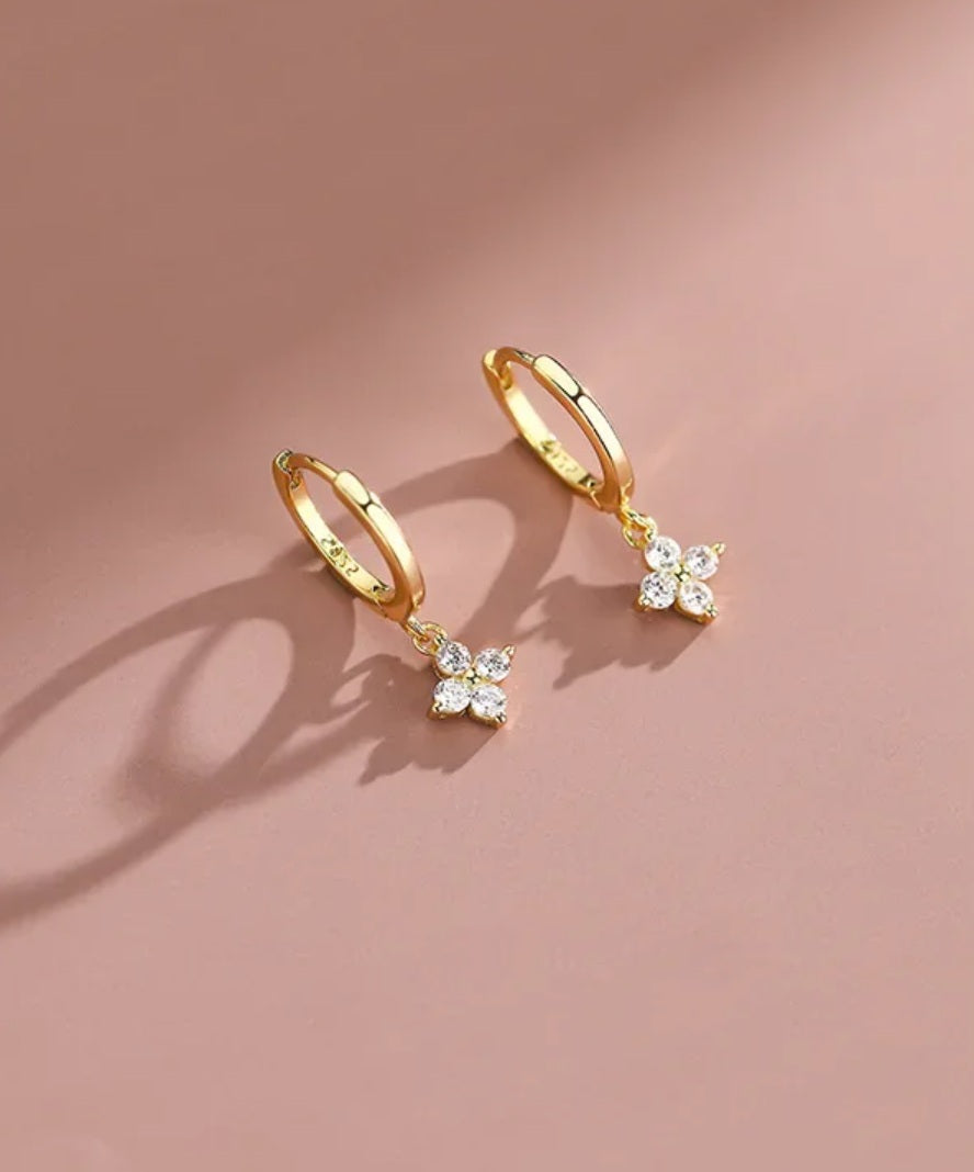 Ohrringe aus 925er Sterling-Silber, vierblättrige Blume, 2cm