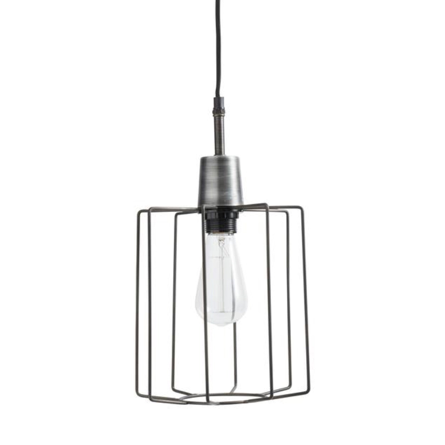 Moderne Pendelleuchte im Industrielook aus gebürstetem Eisen. Inklusive 2,5m Textilkabel und Fassung.