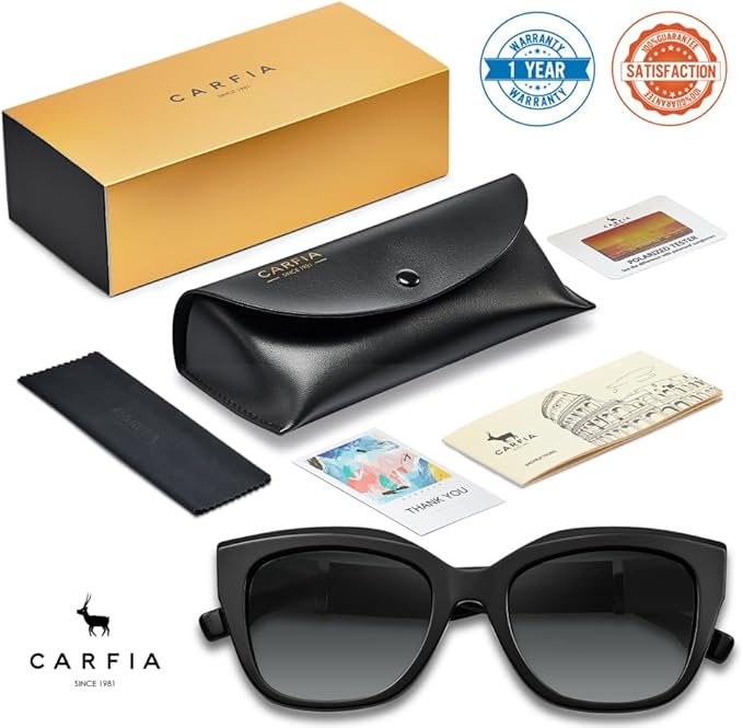 - 【Gift Ideas Package】- Our package includes 1 x Women's Sunglasses, 1 x High-Quality Leather Case, 1 x Soft Lens Wiper, 1 x Polarization Test Card, and 1 x Hard Protective Case. These beautiful and practical sunglasses make for the perfect gift for girlfriends, wives, mothers, and more.