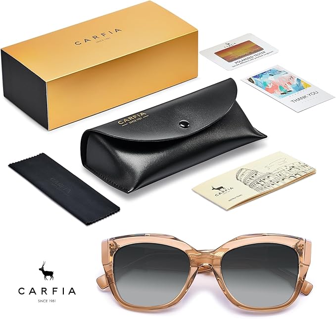 - 【Gift Ideas Package】- Our package includes 1 x Women's Sunglasses, 1 x High-Quality Leather Case, 1 x Soft Lens Wiper, 1 x Polarization Test Card, and 1 x Hard Protective Case. These beautiful and practical sunglasses make for the perfect gift for girlfriends, wives, mothers, and more.