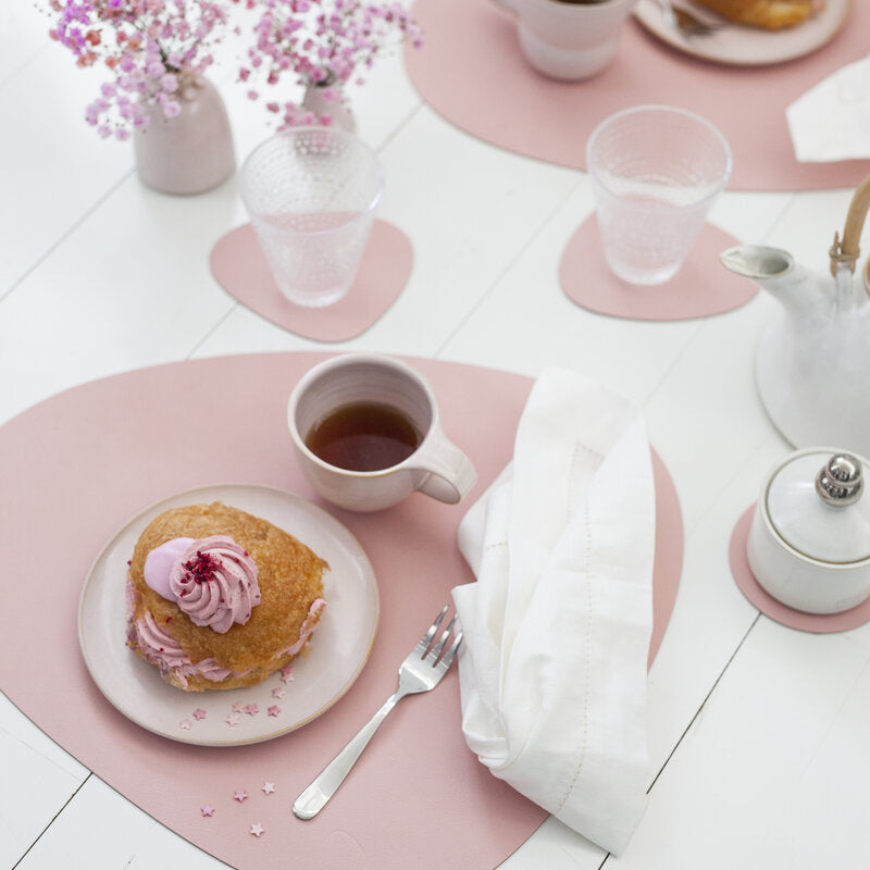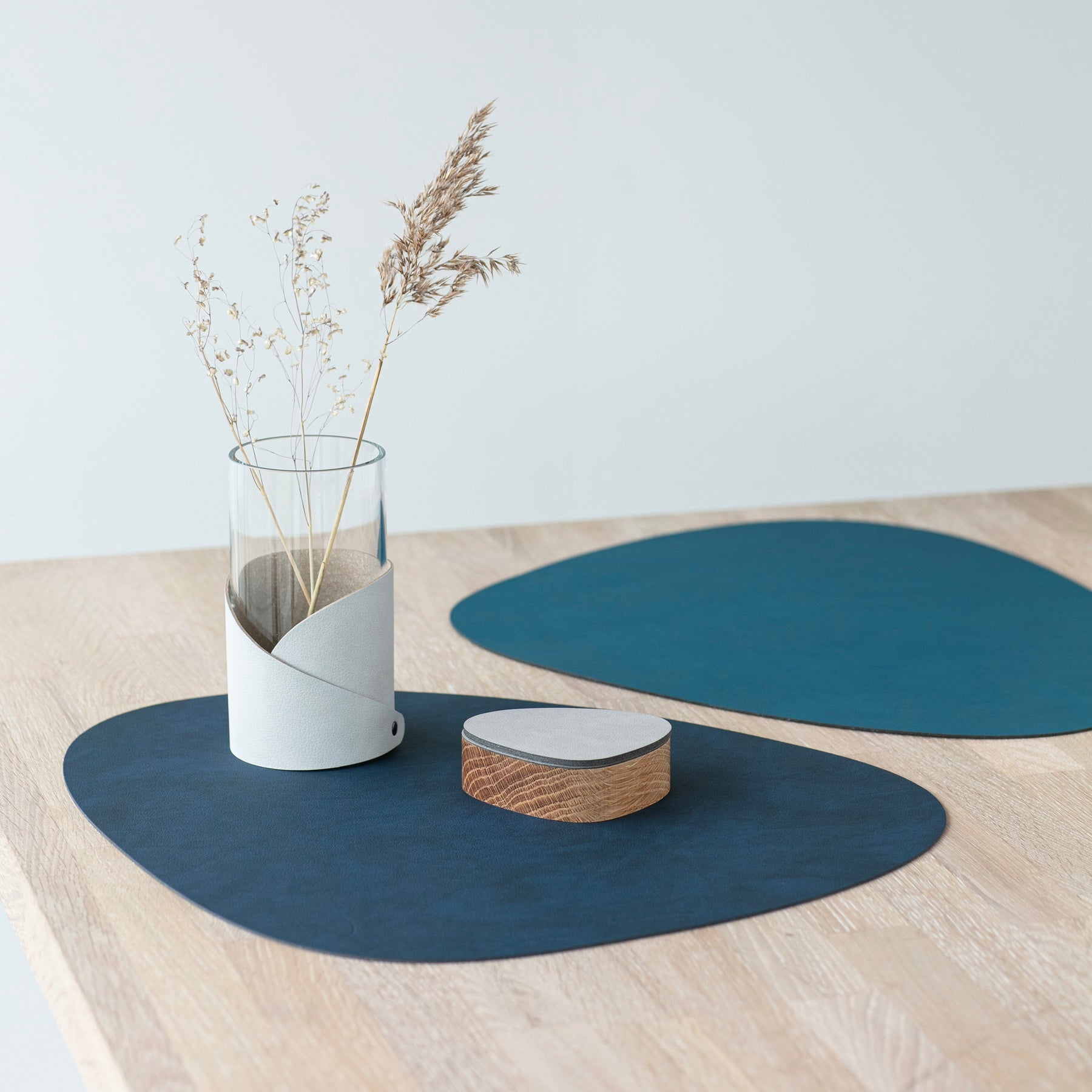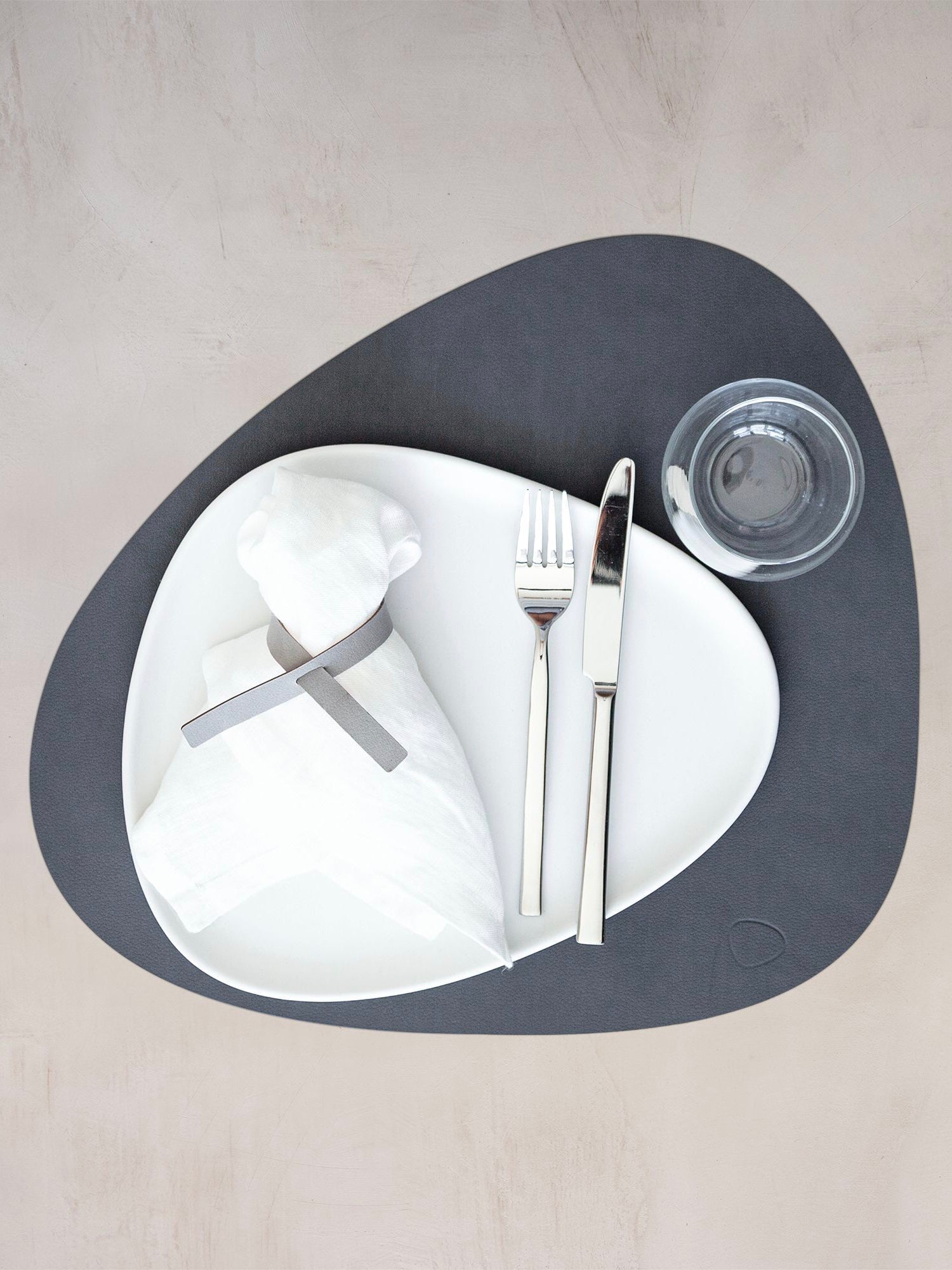 Dieses Platzset ist aufwändig aus recyceltem Leder und Naturkautschuk gefertigt. Die Oberfläche ist leicht mit einem feuchten Tuch zu reinigen. Die ausgefallene Form setzt einen besonderen Akzent.