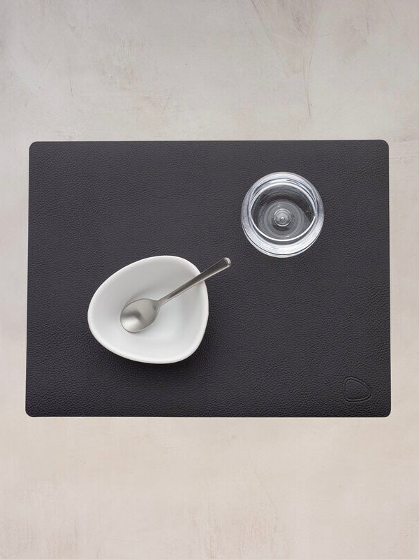 Dieses Platzset ist eine neue Entwicklung aus dem Haus LindDNA. Es ist deutlich biegsamer und die Oberfläche noch pflegeleichter als die bisher bekannten Serien. Die Qualität ist ebenfalls aus recyceltem Leder nach Öko-Tex Standard und Naturkautschuk gefertigt. Die Oberfläche ist leicht mit einem feuchten Tuch zu reinigen. Die Größe dieses Platzsets in der klassischen rechteckigen Form eignet sich bestens für den Frühstückstisch oder zum Servieren von Snacks oder Kaffee und Kuchen. Auch bei kleinen Tischen überzeugt diese Größe.