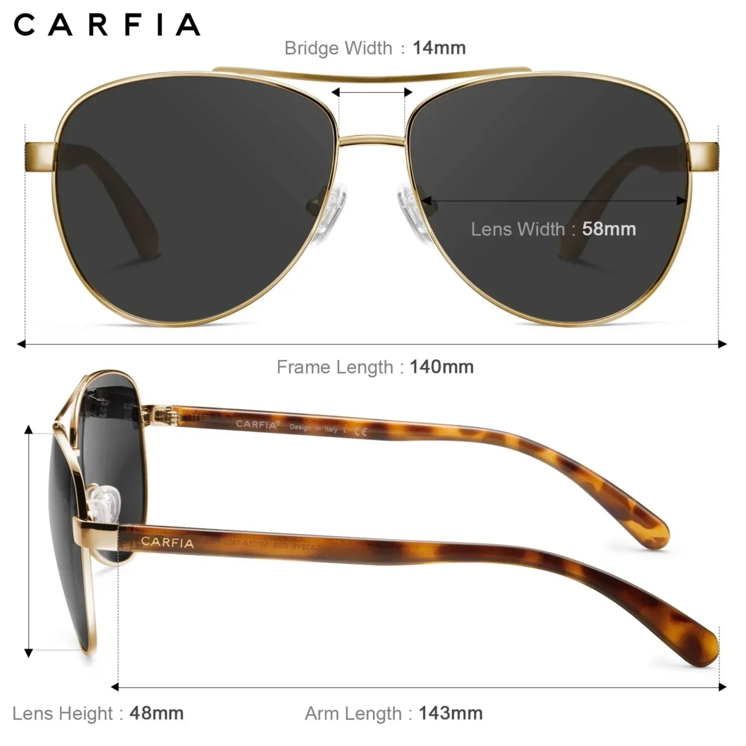 Big Sunglasses 58mm/2.28 inches - The enhanced lens curvature provides better protection against sidelight, along with being wind and dust-proof and anti-impact. They are perfect for outdoor activities such as being at the lake, playing golf, driving, and handling anything else that the sun presents. Carfia pilot sunglasses are ideal for an on-the-go active lifestyle and are flattering to all face shapes.