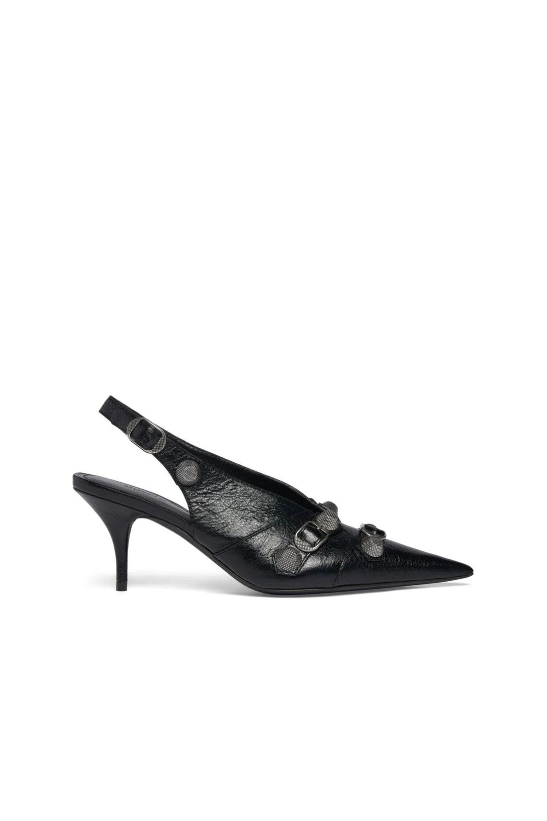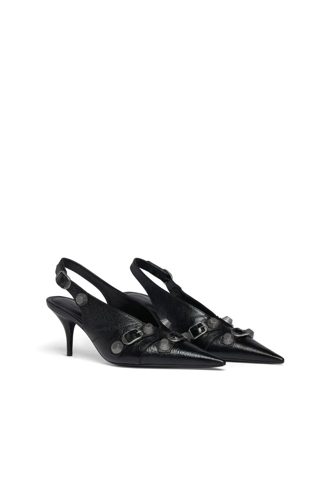 Elevate your style with these stunning Balenciaga Cagole Slingback Pumps. Made from luxurious 100% calf leather, these pumps feature a pointed toe, a 7 cm heel, and chic stud embellishments. Perfect for adding a touch of elegance to any outfit. Step out in confidence and sophistication with these must-have pumps.