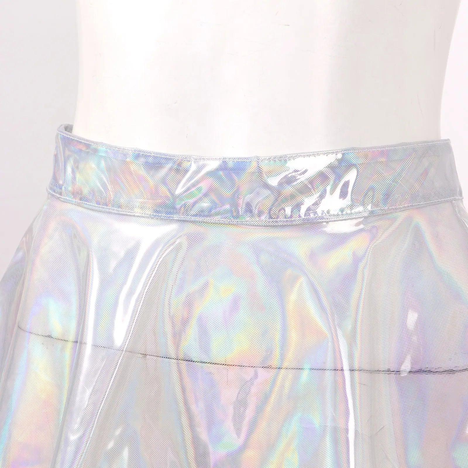 Erobern Sie die Tanzfläche mit diesem auffälligen Rave Minirock. Der ausgestellte Schnitt betont Ihre Taille und sorgt für eine schmeichelhafte Passform, während das glänzende PVC-Material Ihren Look zum Strahlen bringt. Der Reißverschluss auf der Rückseite verleiht dem Rock eine edgy Note und macht ihn perfekt für Clubnächte und mutige Outfits.