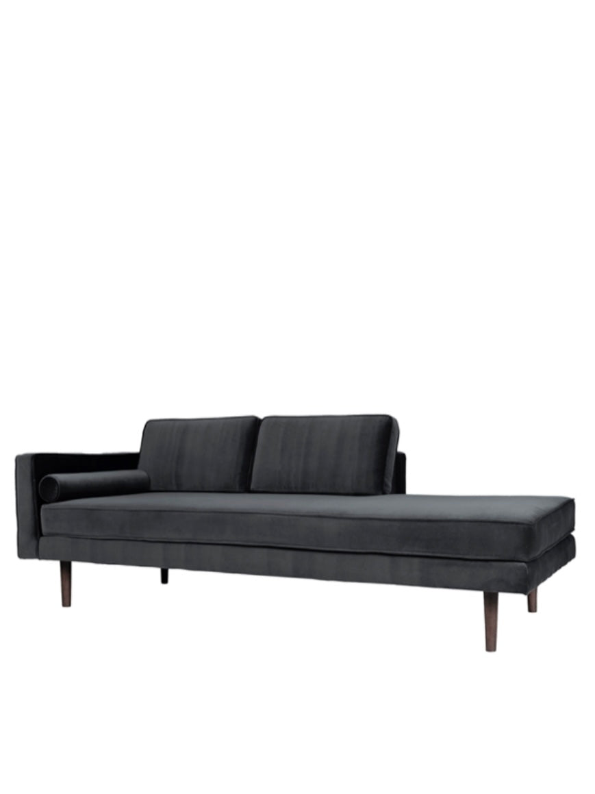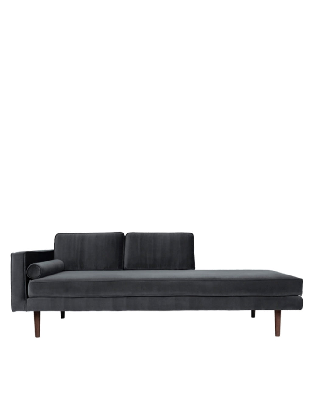 Stylische Récamiere aus der neuen Polstermöbelkollektion von Broste Copenhagen aus pflegeleichtem Polyestersamt in coolem nordischen Design. Passt zu vielen Einrichtungsstilen und gibt jedem Raum eine besondere Note.