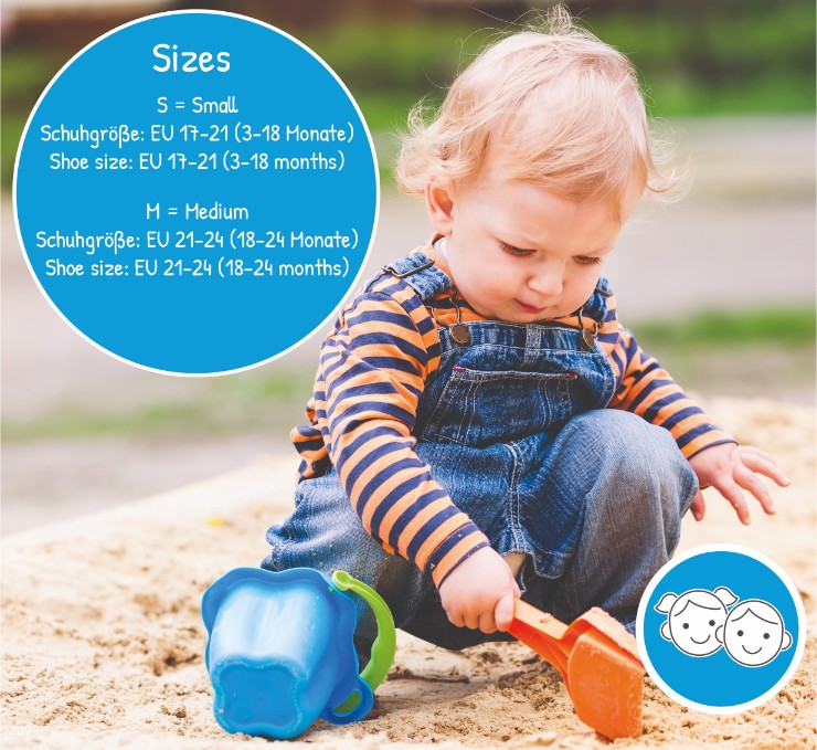 Größe S für Babys von ca. 3–18 Monaten (Schuhgröße 17–21)