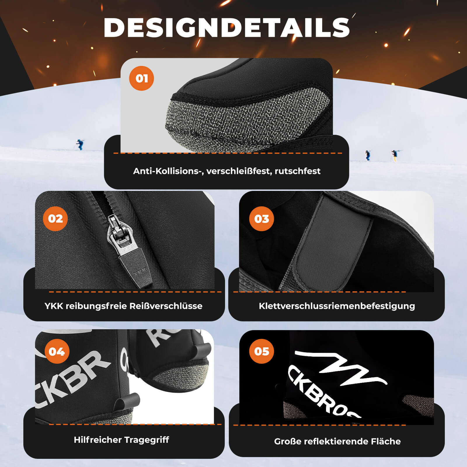Beheizte ROCKBROS Fahrradschuhabdeckungen mit 3 Temperaturstufen (bis 60°C), 5000mAh USB-Akku und winddichter, wasserabweisender Funktion. Ideal für kalte Fahrten mit reflektierenden Details und langlebigem Design.