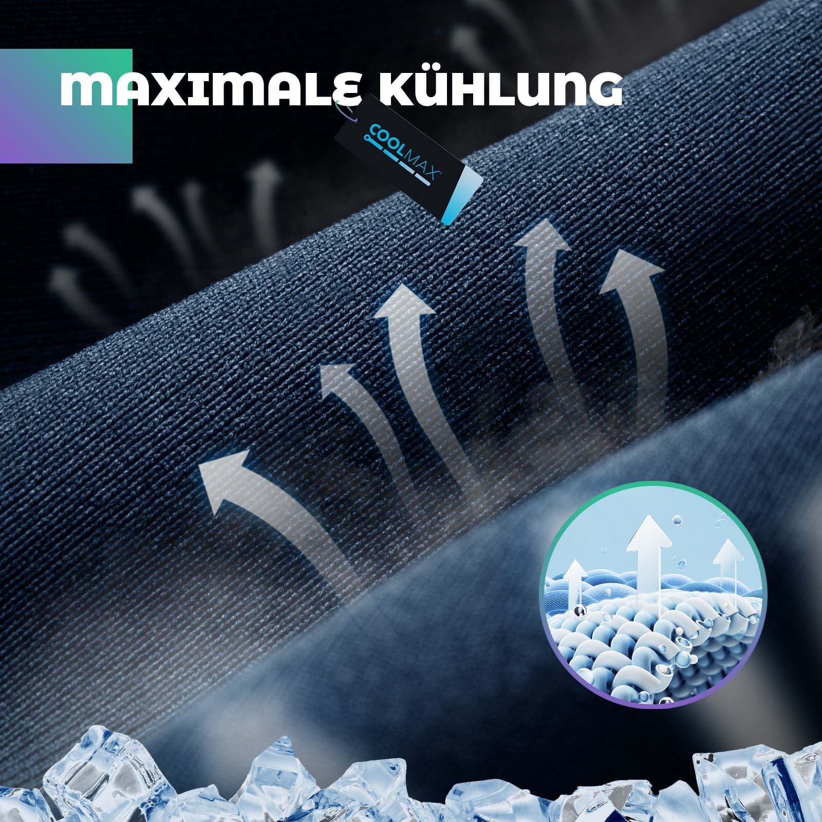 - Cool & Atmungsaktiv: COOLMAX cooles Fasergewebe, die 4-Kanal-Struktur des Gewebes transportiert Schweiß und Feuchtigkeit schnell von der Hautoberfläche weg und trocknet 4-8 mal schneller als Baumwolle.