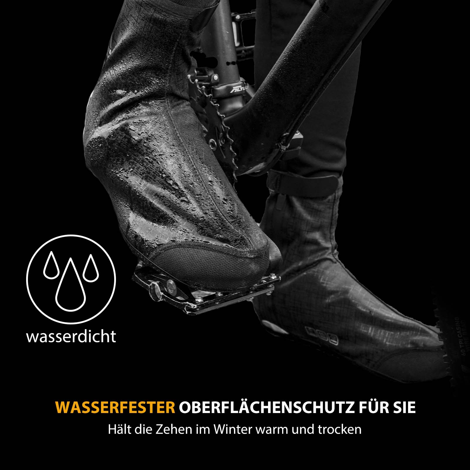 - WINDDICHT & WASSERABWEISEND: Die Fahrradschuhüberzüge sind aus 50% Polyester + 50% PU, winddicht und wasserabweisend. Das innere Rocker-Fleece ist sehr warm und kann Ihre Füße vor der Kälte schützen.