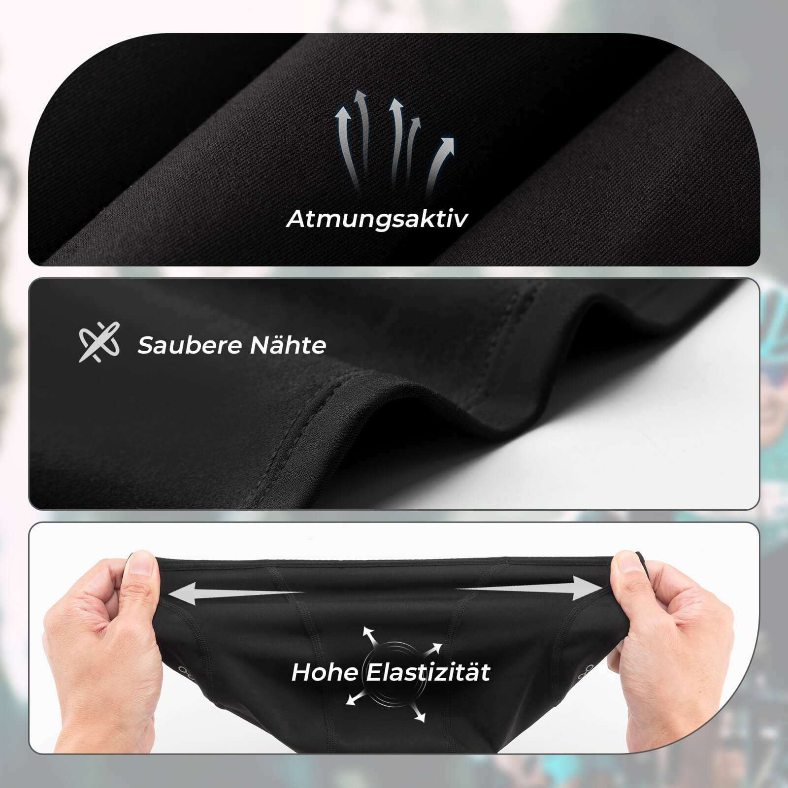 Das Durchdachte Anti-rutsch-Design sorgt dafür, dass die Maske beim Tragen nicht so leicht verrutscht, und das breitere Anti-Rutsch-Tuch an der Stirn passt sich besser an den Kopf an und verhindert ein Verrutschen beim Tragen eines Helms.