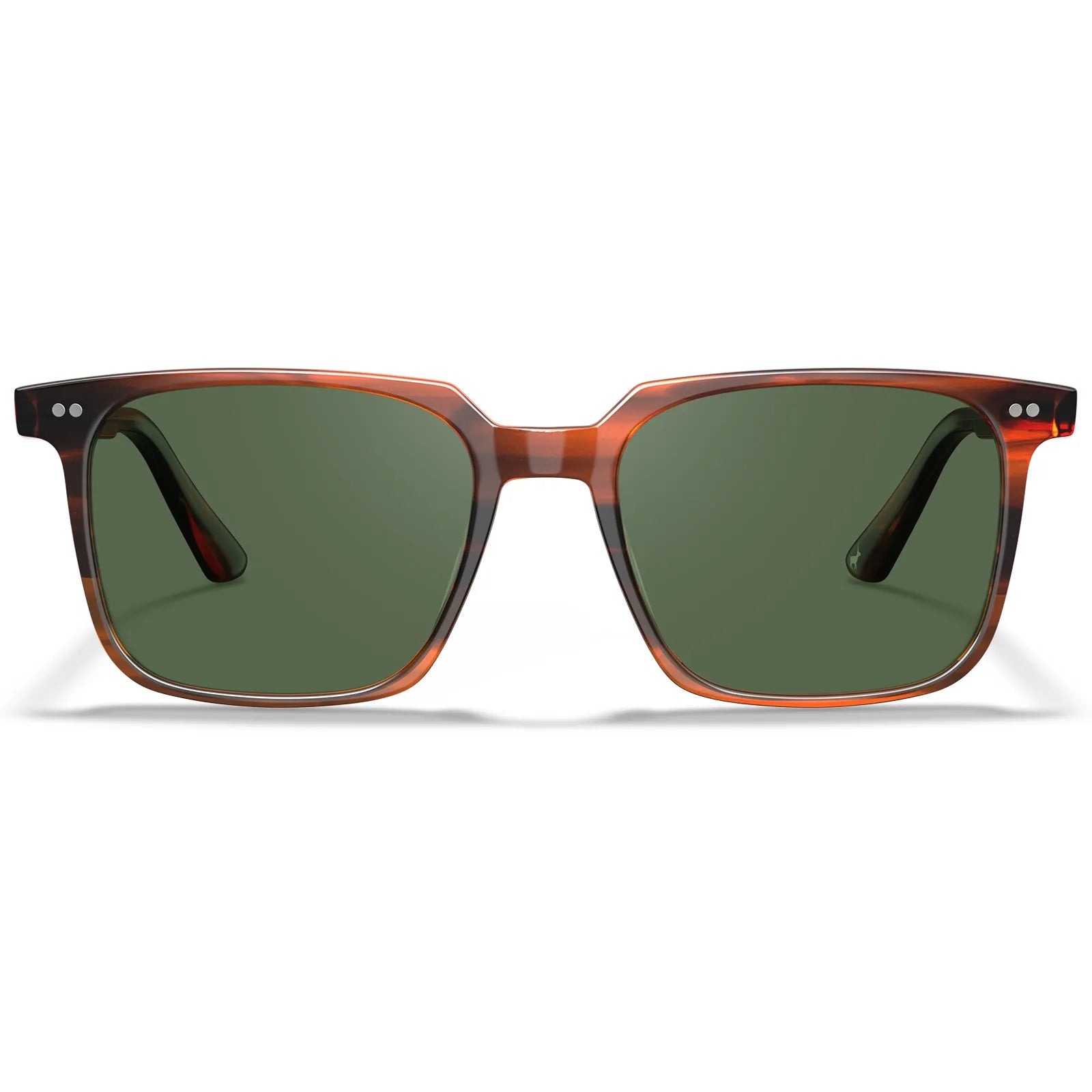 - Acetate Striped Frame Men's Sunglasses - Our sunglasses are made of hand-polished Italian acetate material. Compared to cheap plastic frames where the color is sprayed on, our glossy frame retains its color brightness impeccably over time because the hue is inherently embedded in the material. This way, it avoids fading, peeling, yellowing, or other forms of discoloration. The hypoallergenic acetate is also resistant to sweat corrosion, ensuring skin health during outdoor activities.