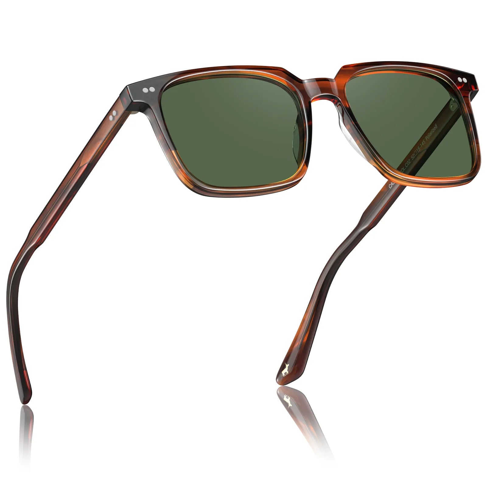 - High-End Polarized Men's Sunglasses - These luxury men's sunglasses are designed with meticulous attention to every detail, from high-quality acetate to ensure unmatched functionality and incredible comfort. Hand-laid functional pins offer double adherence between the frame front and hinge for additional strength and durability. The legs open and close smoothly with a moderate screw tightness. Also, the elastic curved legs rest comfortably behind the ears all day without squeezing the head.
