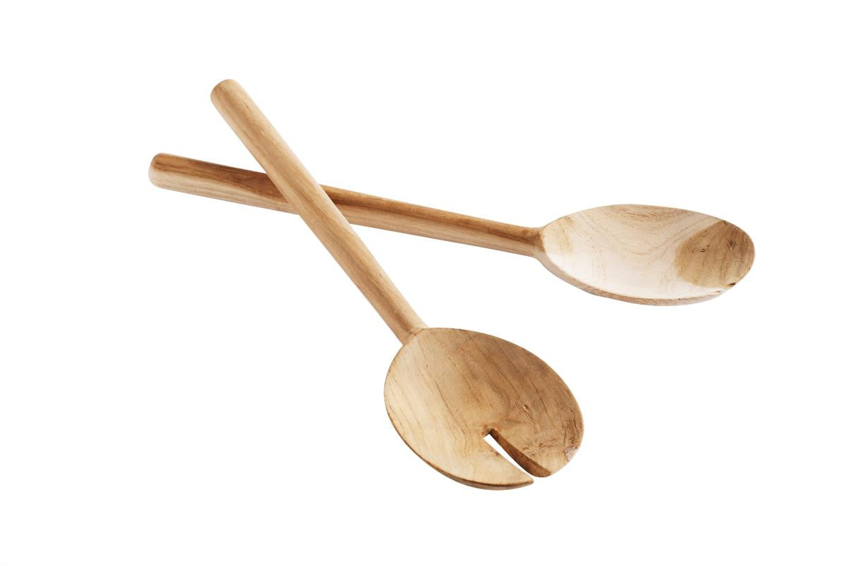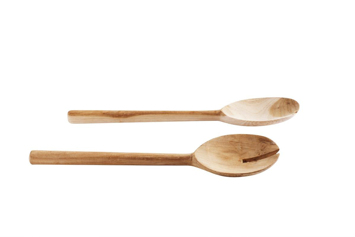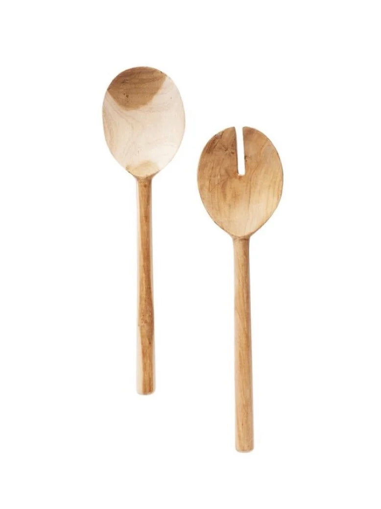 Rustikales Salatlöffel 2er-Set aus Teakholz. Jeder Löffel fällt unterschiedlich aus.