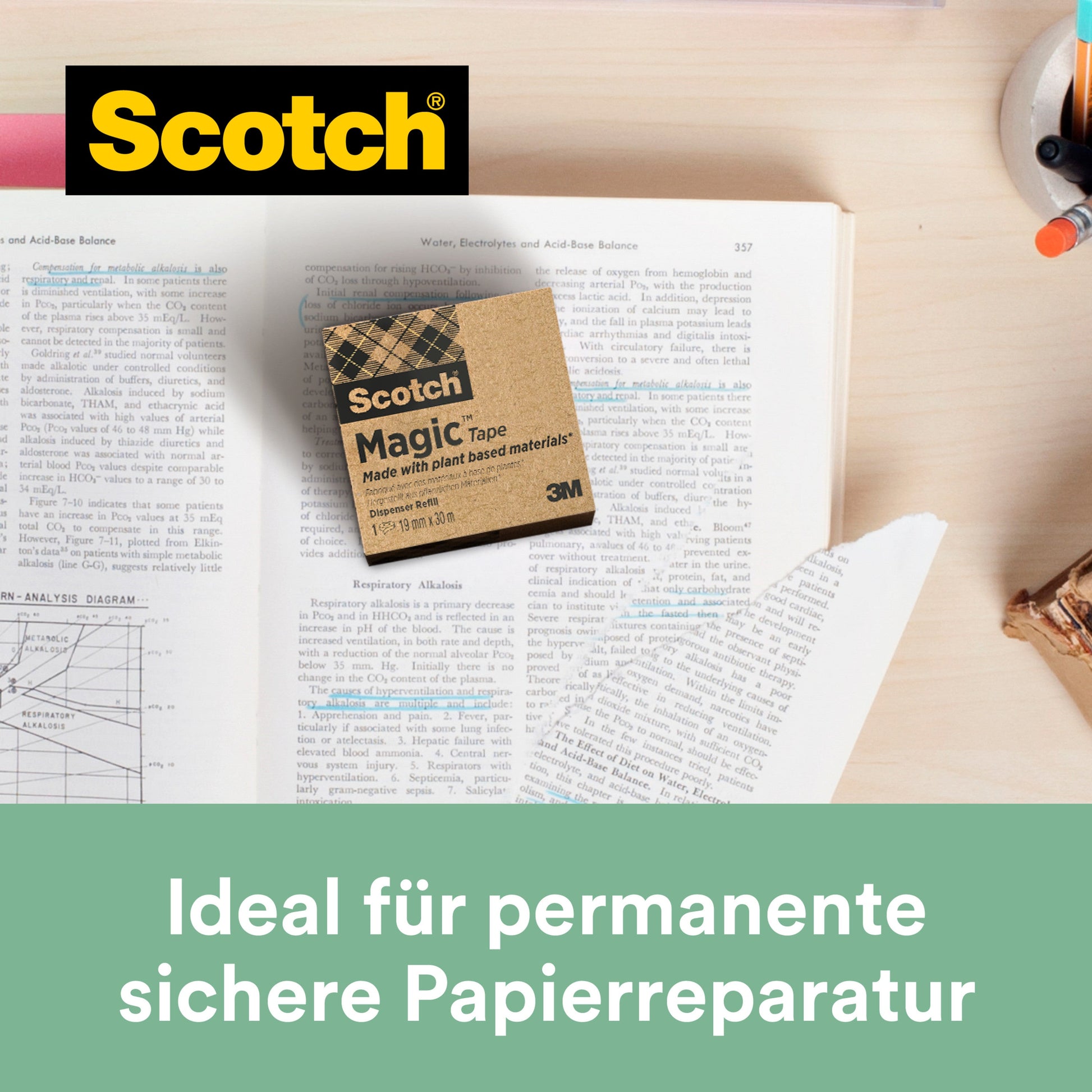 Scotch® Magic™ Klebeband 9-1930R, mit 66 % pflanzlichem Klebstoff hergestellt, 19 mm x 30 m, 1 Rolle/Packung | Packung (1 Rolle)