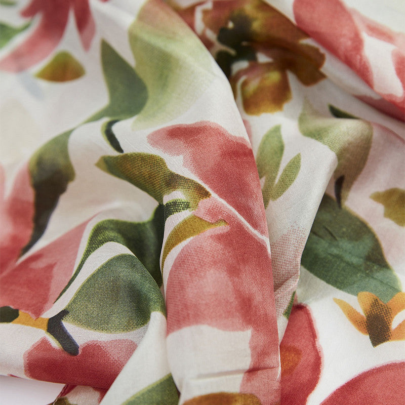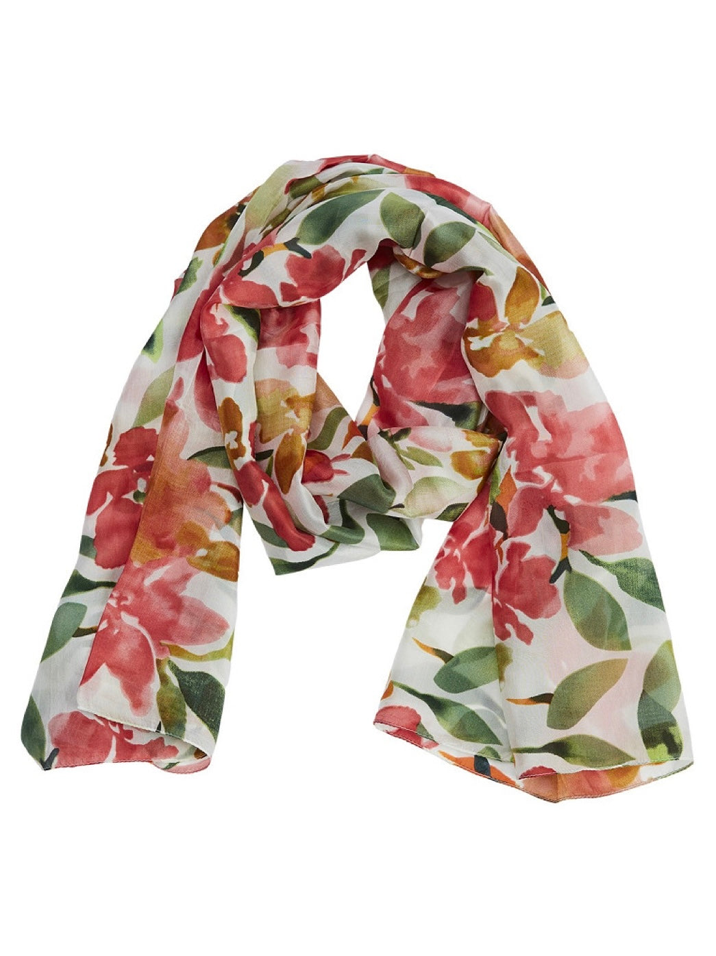 Hochwertiger Modeschal mit einem edlen Floralmuster aus reiner Seide. Er lässt sich ideal zu Kleidern und Shirts kombinieren.