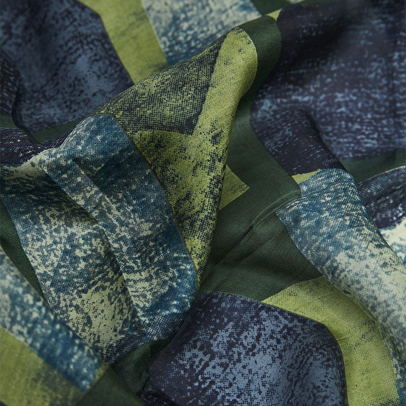 Hochwertiger Modeschal mit einem edlen Grafikmuster aus reiner Seide. Er lässt sich ideal zu Kleidern und Shirts kombinieren.