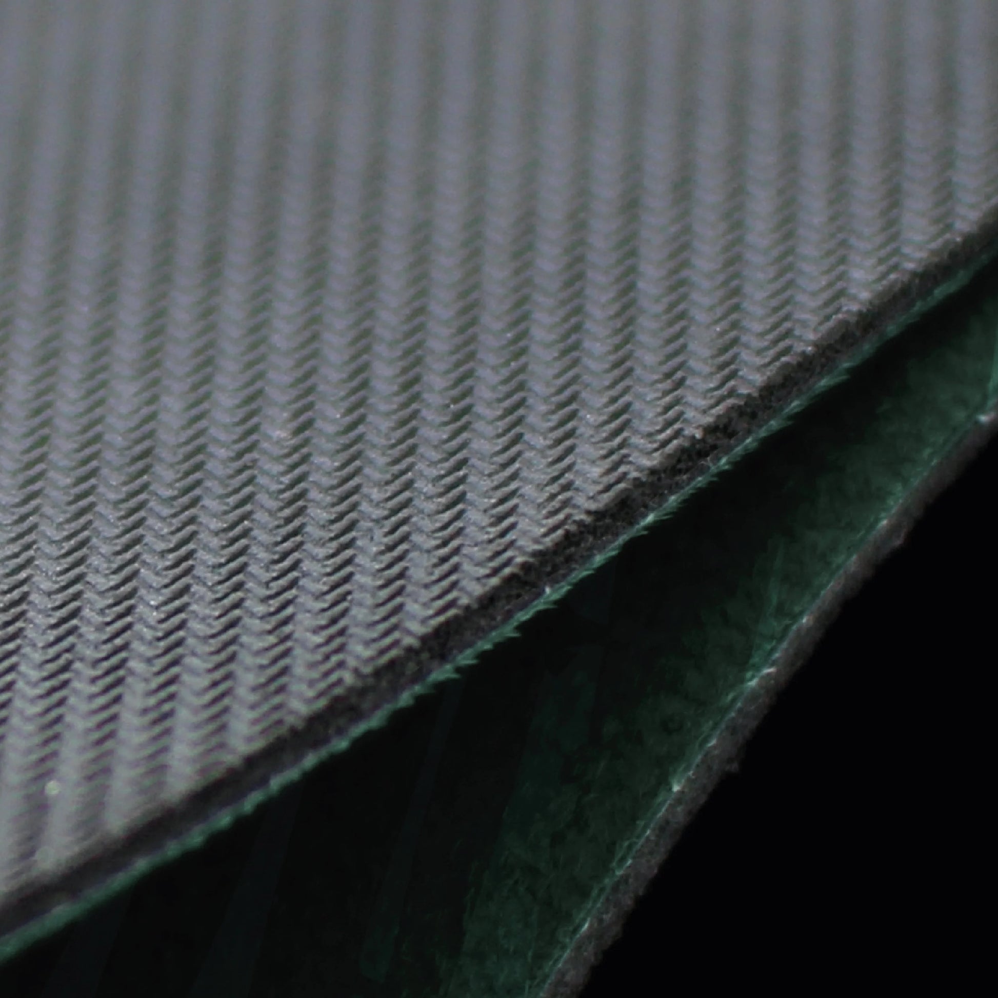 Ihre Oberfläche besteht aus Mikrofaser (recyceltes PET) welche besonders beim Schwitzen ihre besondere Gripigkeit entfaltet. Mikrofaser absorbiert Feuchtigkeit effektiv, was bedeutet, dass die Matte rutschfest bleibt, selbst bei intensiveren Übungen oder Schweißbildung. Um den Grip bereits vor dem Schwitzen zu ermöglichen haben sie eine harzbasierte Anti-Slip Beschichtung. Mit ihrer Basis aus 1mm dickem Naturkautschuk hat sie stabilen Halt zum Boden und ist dennoch flexibel faltbar.
