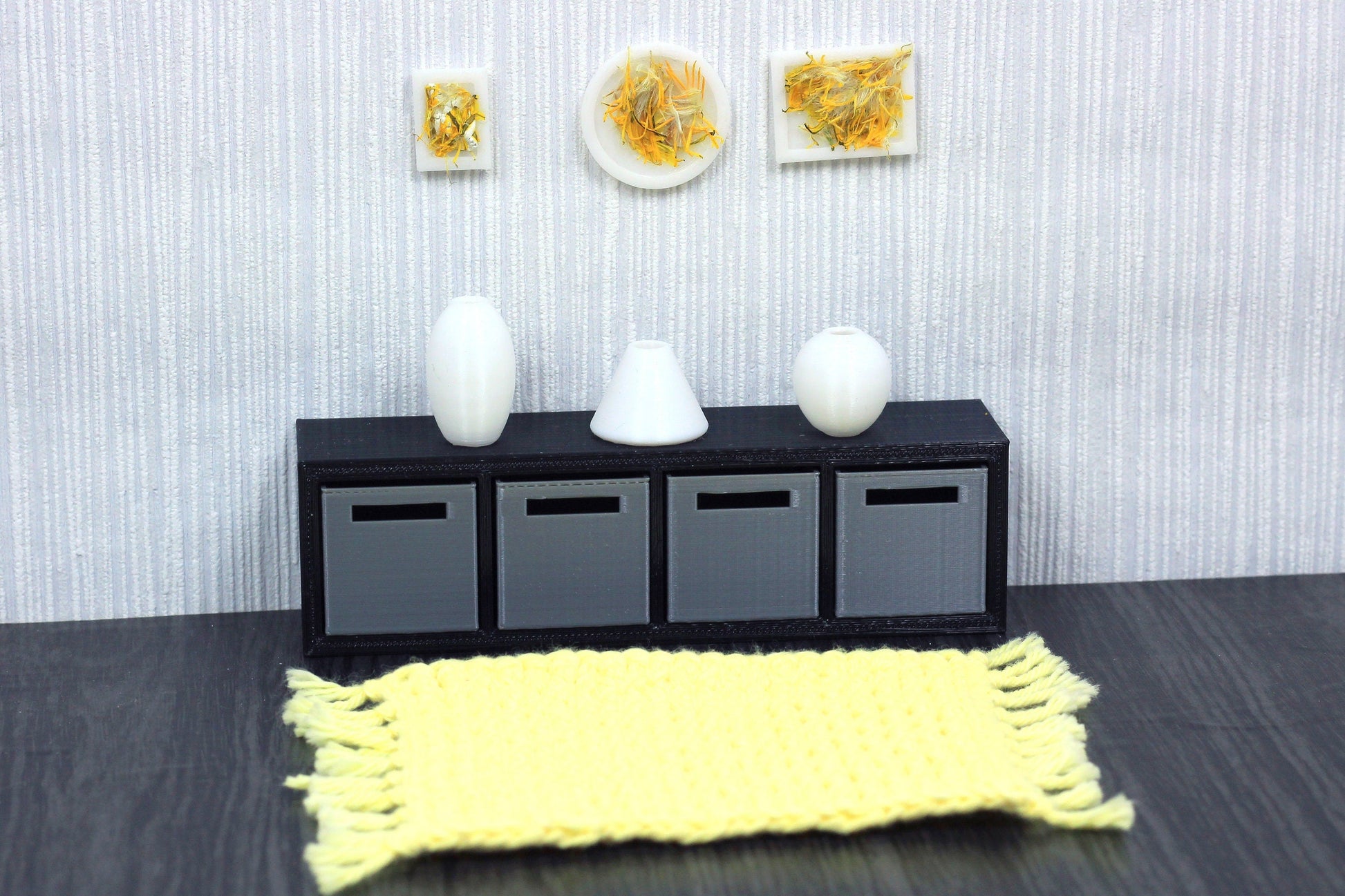 Bring life and joy into your dollhouse with this miniature round vases set.