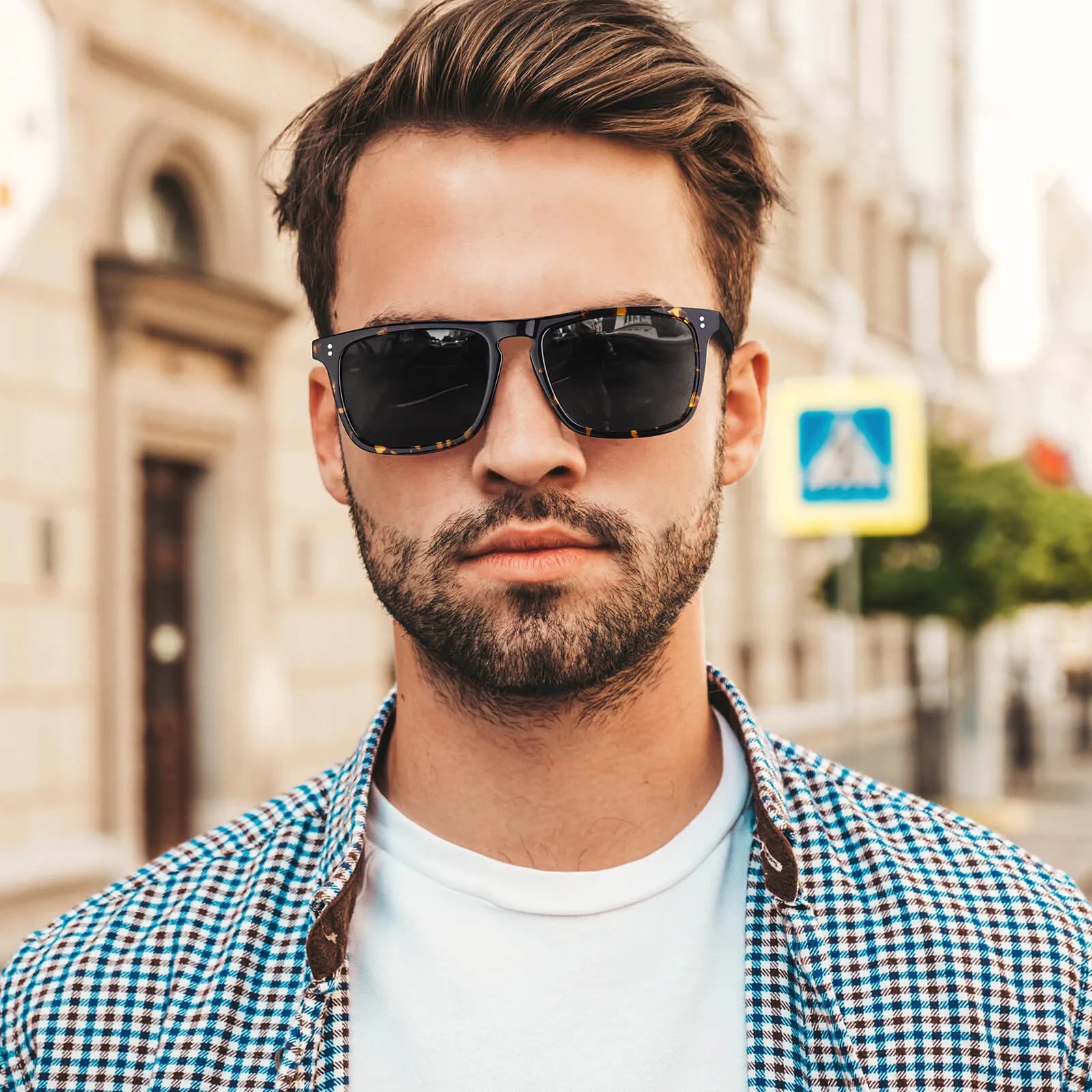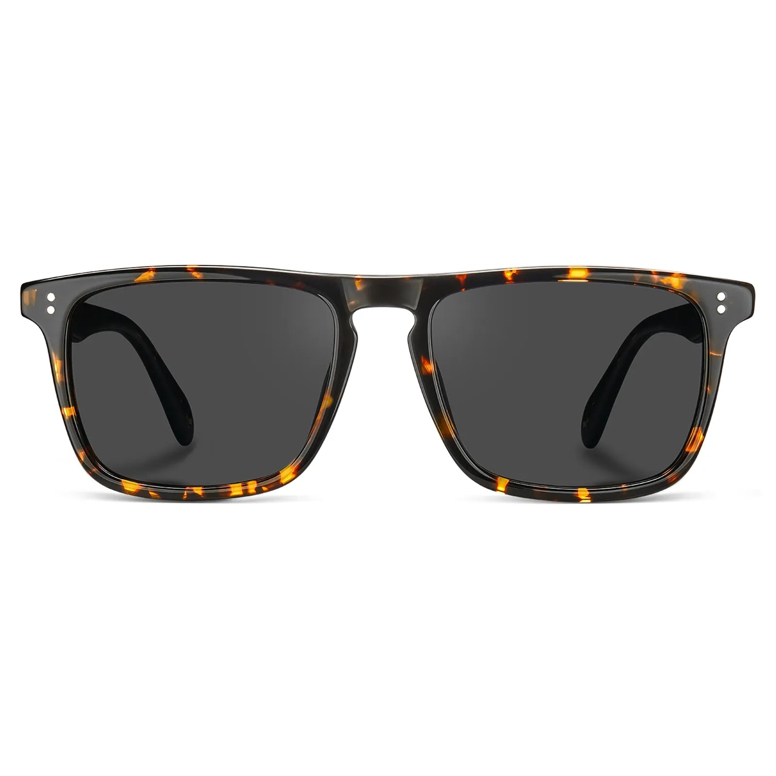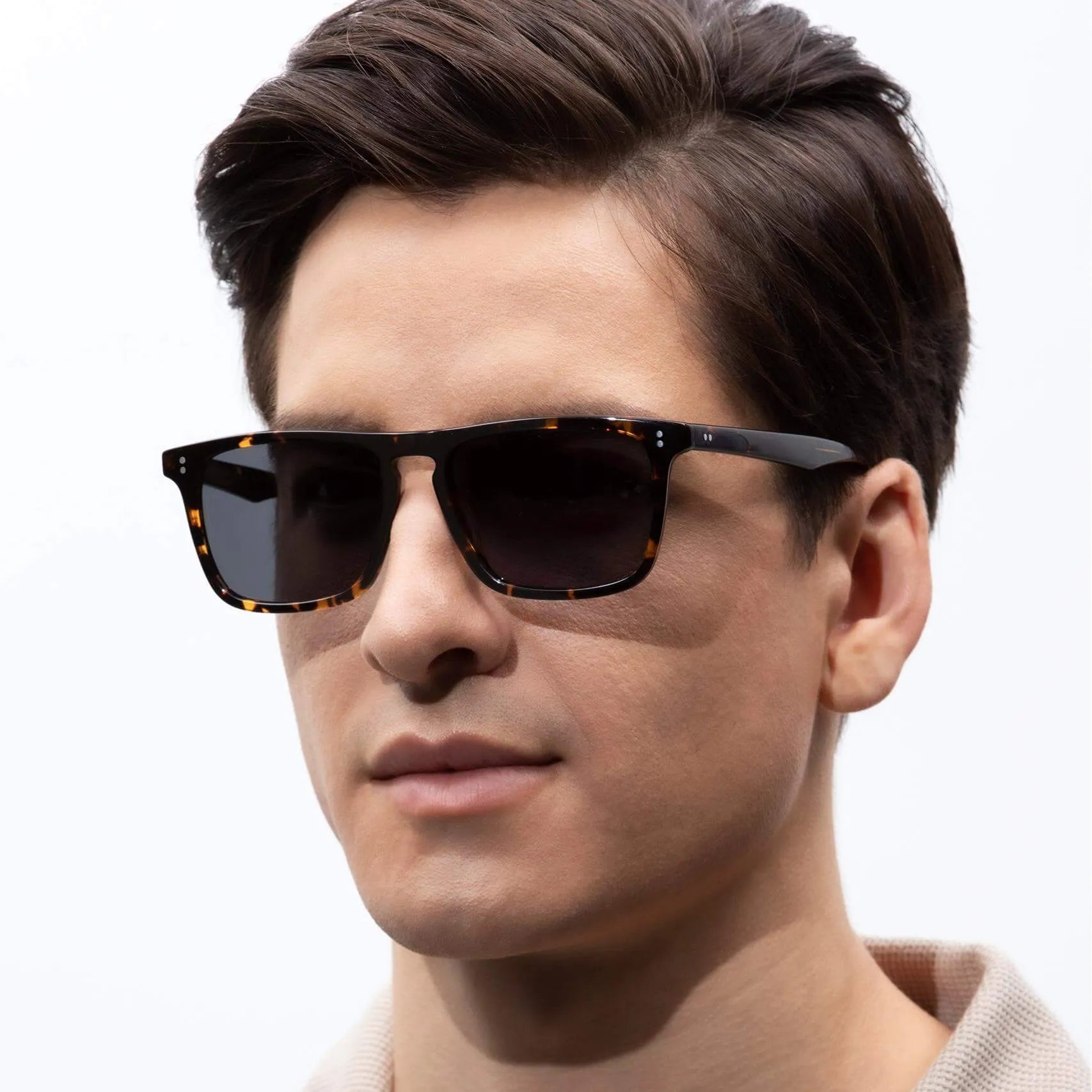 If you are looking for the perfect holiday accessory, these tortoiseshell rectangular acetate sunglasses are your best choice. Juhn's full-rim rectangular frame made of acetate, with a warm tortoiseshell finish, is a new interpretation of the classic style. And with classic rivet details and spring hinges, it is more comfortable to wear.