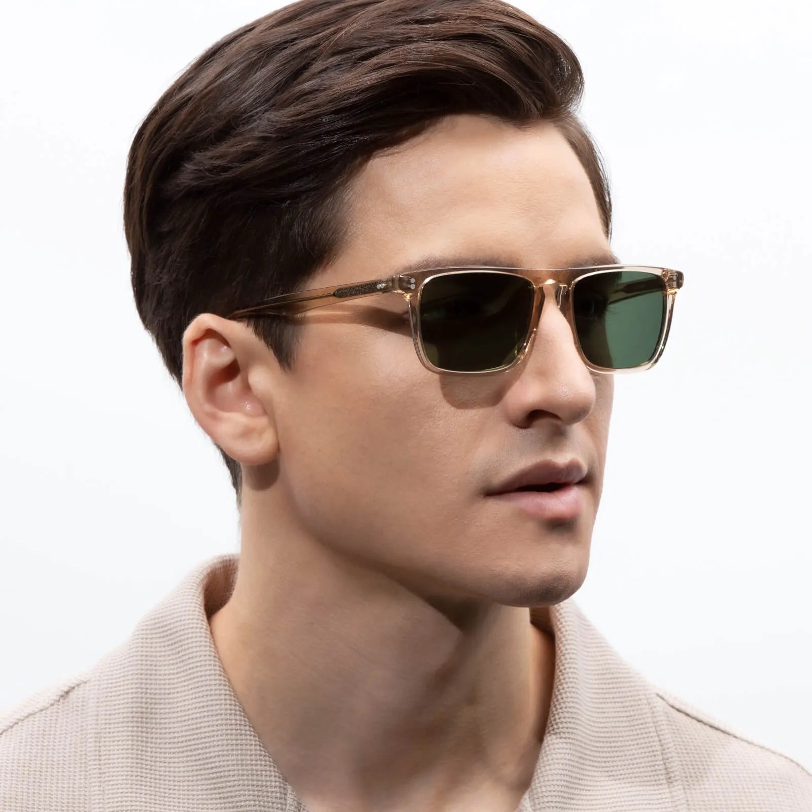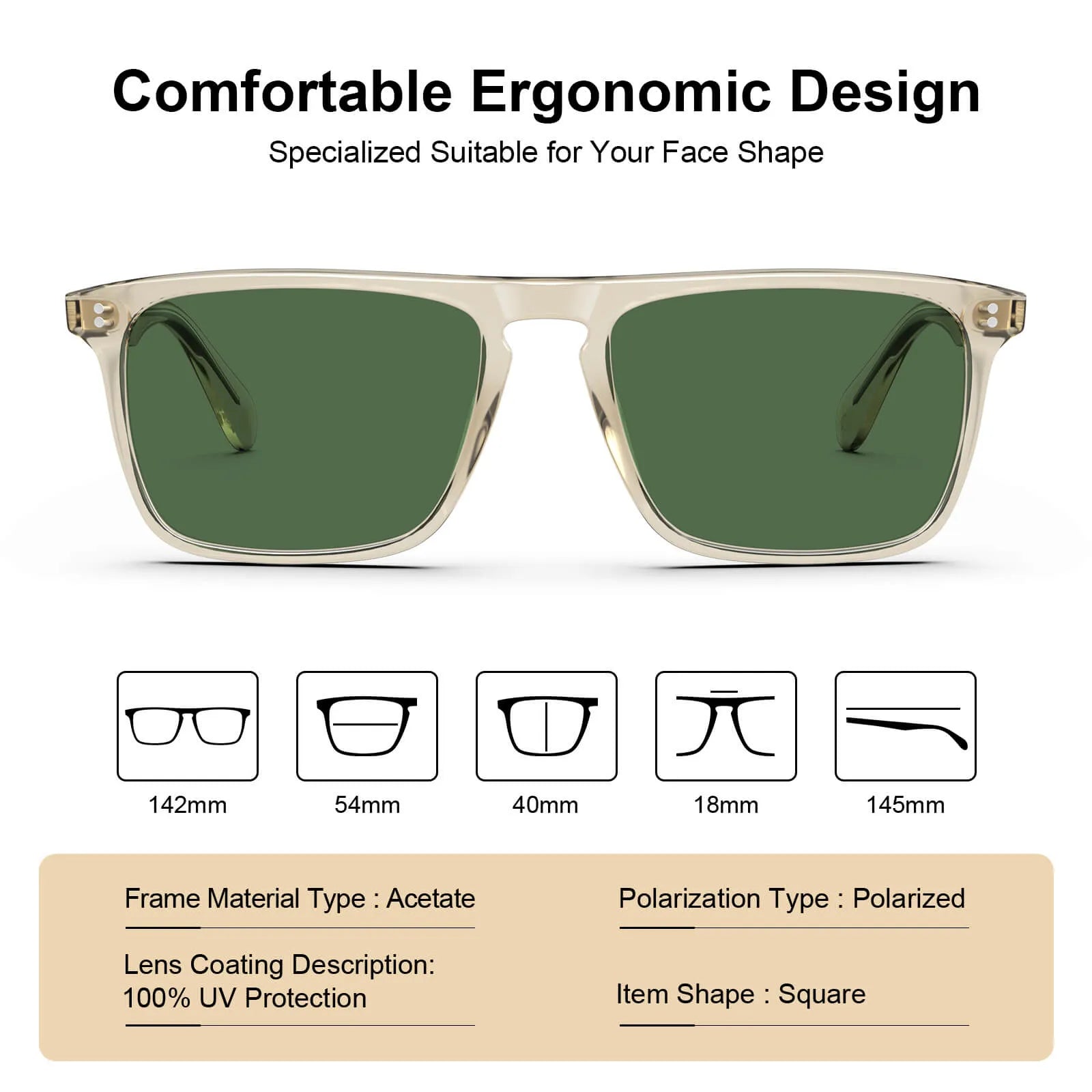 If you are looking for the perfect holiday accessory, these clear rectangular acetate sunglasses are your best choice. Vergame's full-rim rectangular frame made of acetate,is a new interpretation of the classic style. And with classic rivet details and spring hinges, it is more comfortable to wear.
