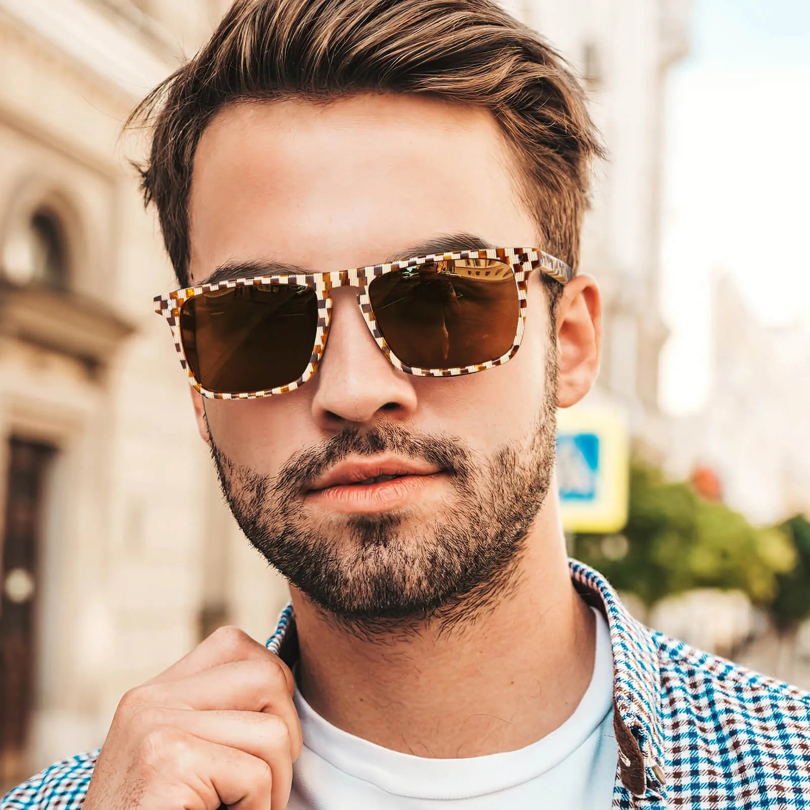 If you are looking for the perfect holiday accessory, these clear rectangular acetate sunglasses are your best choice. Vergame's full-rim rectangular frame made of acetate,is a new interpretation of the classic style. And with classic rivet details and spring hinges, it is more comfortable to wear.