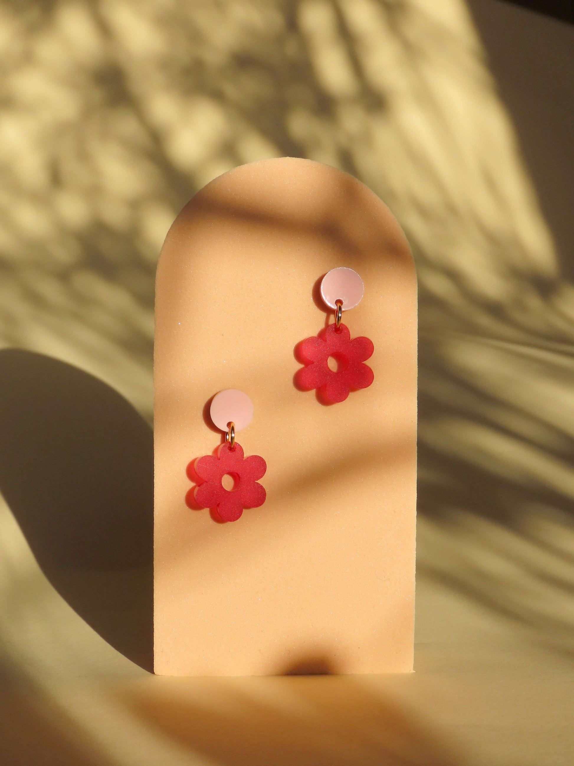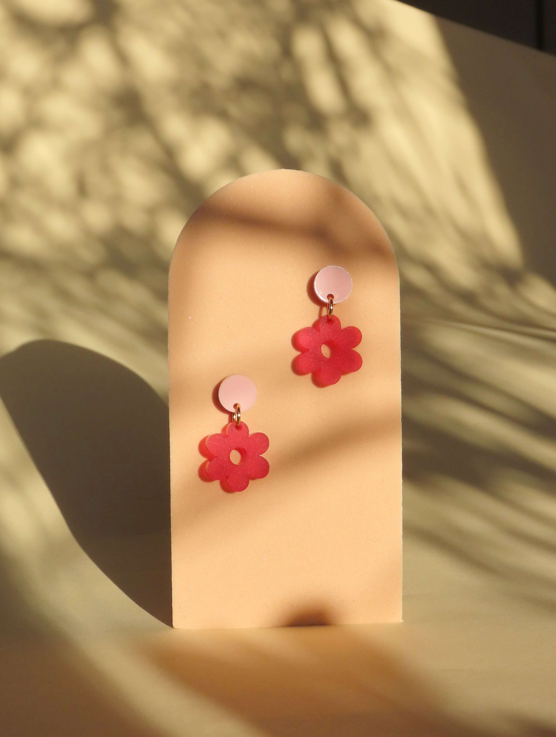 Single Daisy Acryl Ohrringe mit Edelstahlstecker in rosa rot