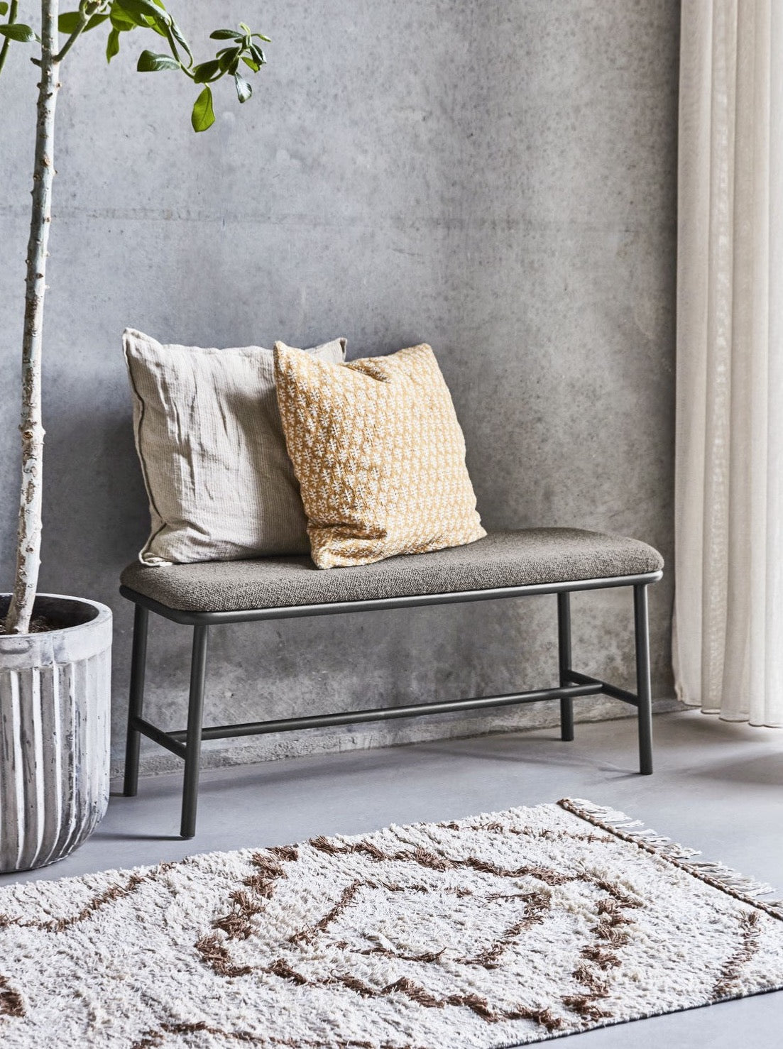 Eine Bank ist die ideale Lösung, wenn du auf der Suche nach einer lässigen Sitzgelegenheit oder einer dekorativen Ergänzung für deine Einrichtung bist. Die Bank von House Doctor vereint das weiche und taktile Gefühl des Bouclés mit dem minimalistischen Flair des schlichten Stahlgestells, um so ein vielseitiges Design für jeden Raum der Wohnung zu bieten. Stell die Bank in den Flur, um deine Gäste willkommen zu heißen, als Sitzgelegenheit ins Wohnzimmer oder ans Ende des Bettes im Schlafzimmer - die Möglichkeiten sind endlos und die Bank wird überall einladend aussehen.