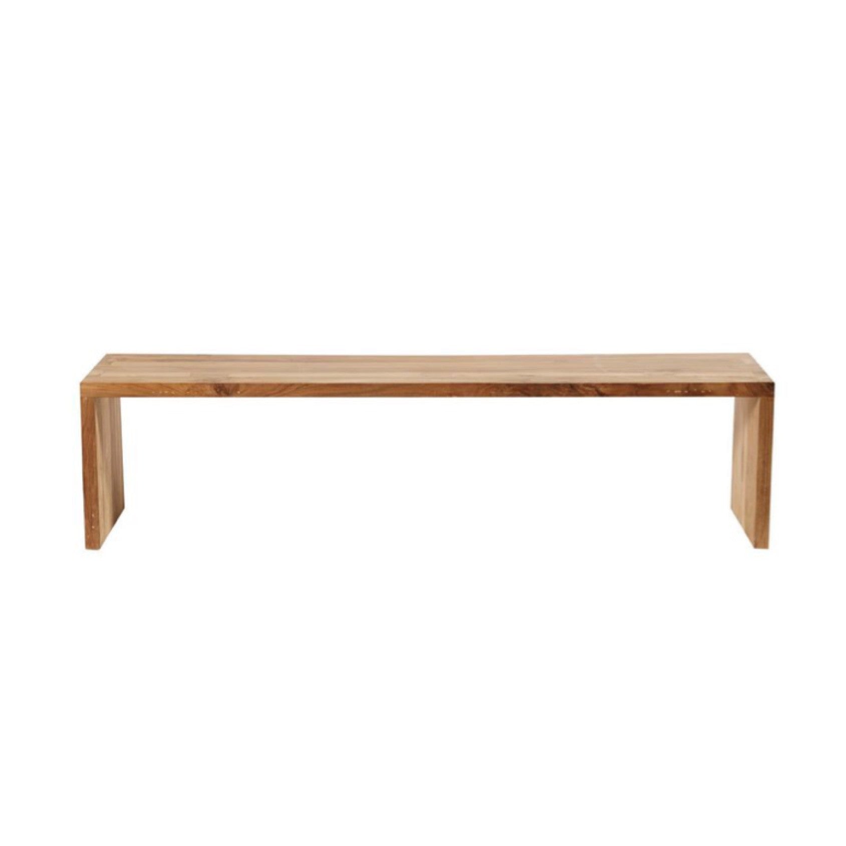 Hochwertig verarbeitete Sitzbank aus recyceltem Teakholz. Drinnen und draußen nutzbar. Bei permanenter Nutzung im Freien verändert sich die Farbe. Indoor kann diese Bank auch als Tisch, Dekorationsfläche oder zur Ablage genutzt werden.