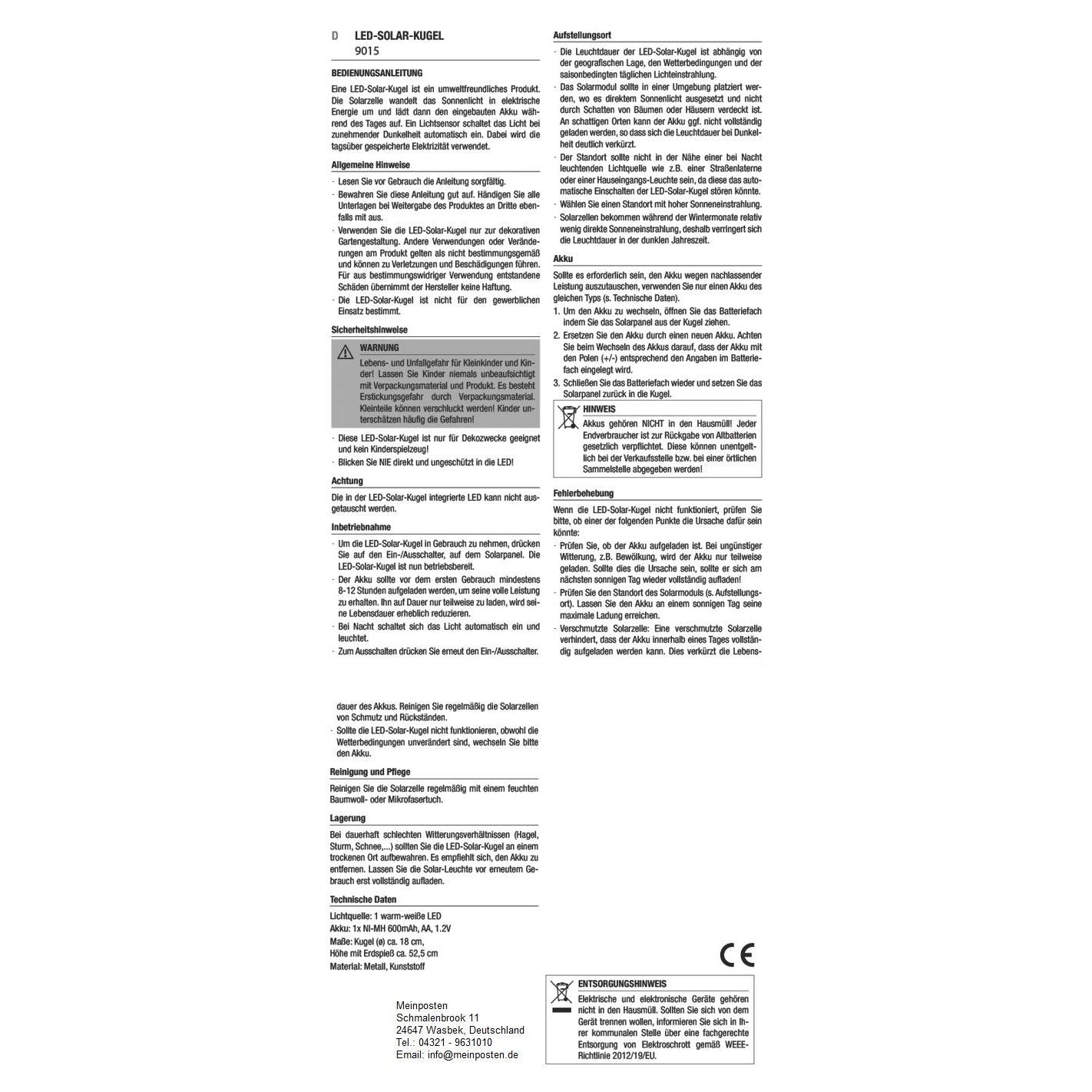 Inkl. Akku, Dämmerungssensor und mit An- und Ausschalter.