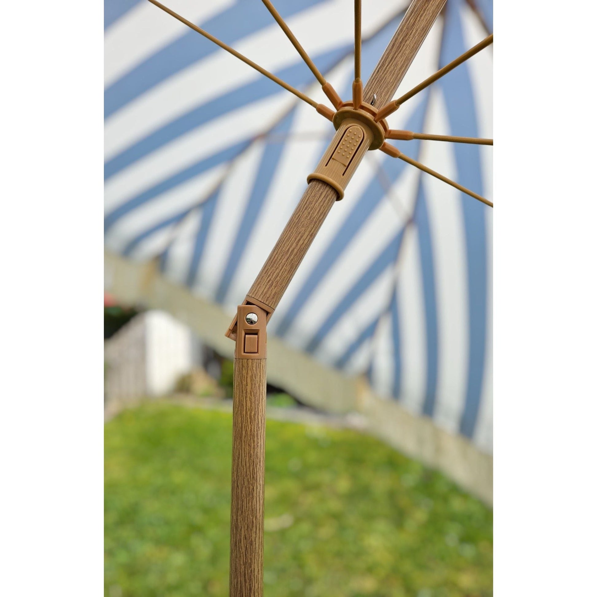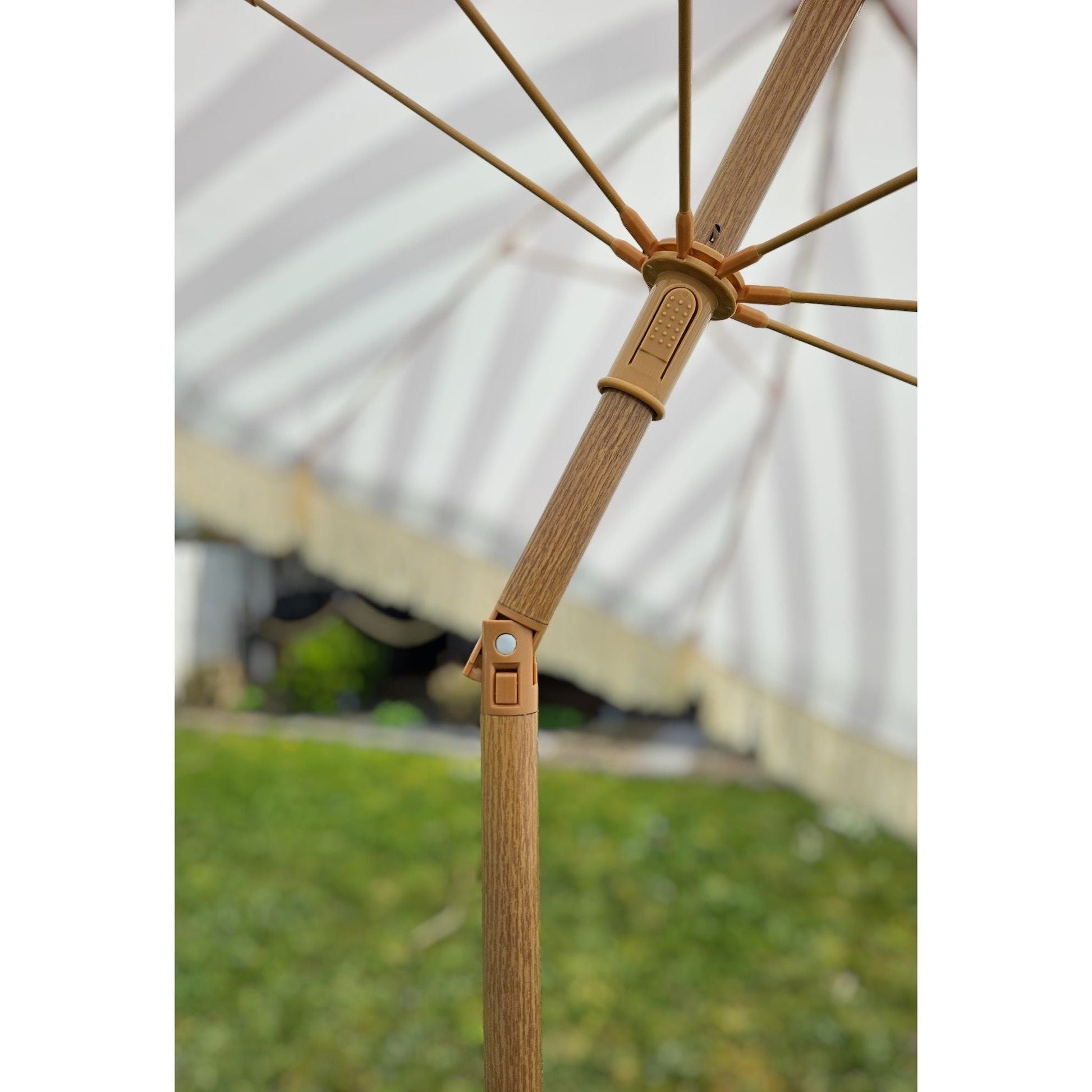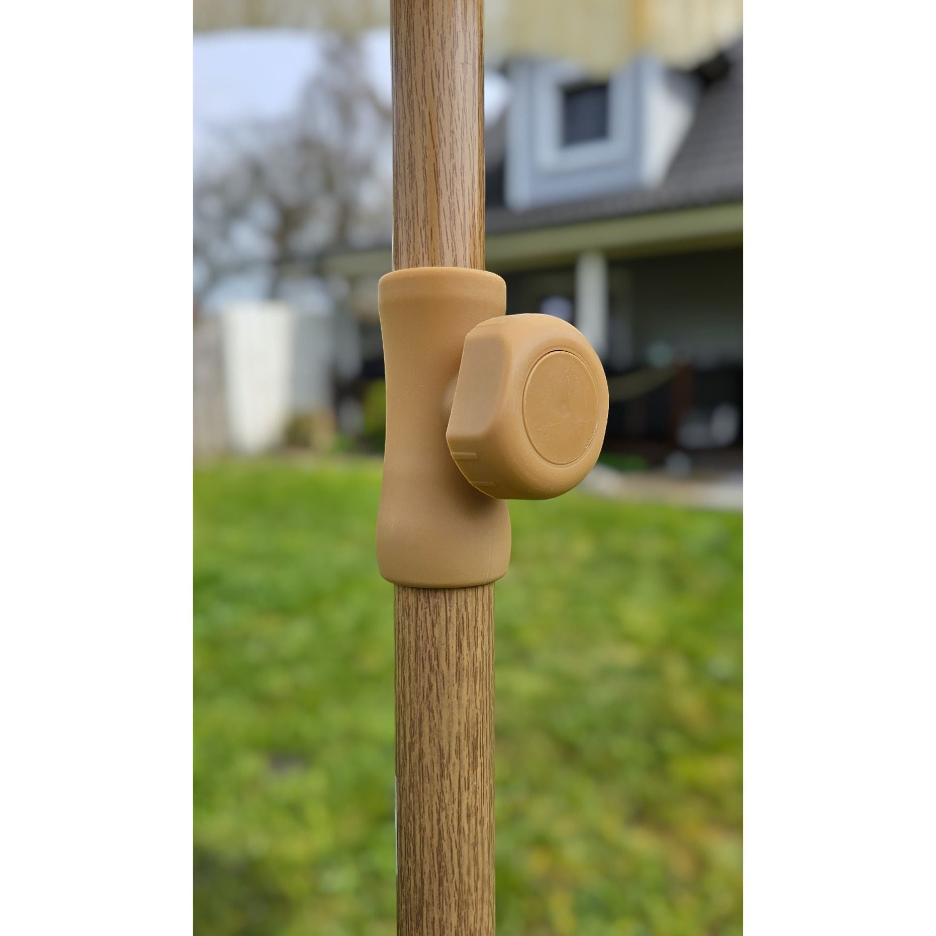 Durch den zweiteiligen Stamm kann der Sonnenschirm platzsparend aufbewahrt, schnell verstaut und einfach transportiert werden.