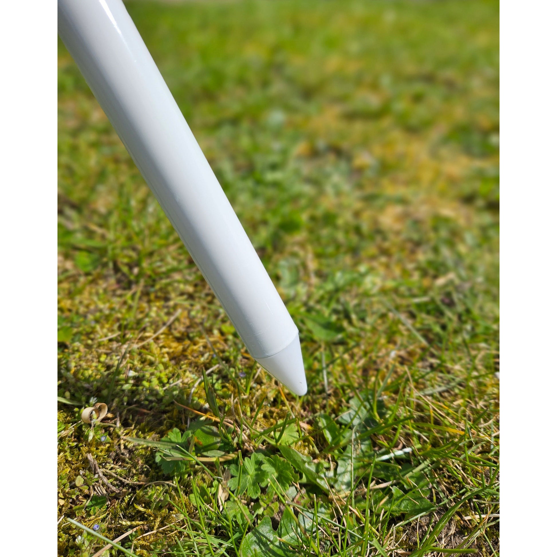 Unten am Stamm mit leichter Spitze um den Schirm in den Strandboden zu stecken.
