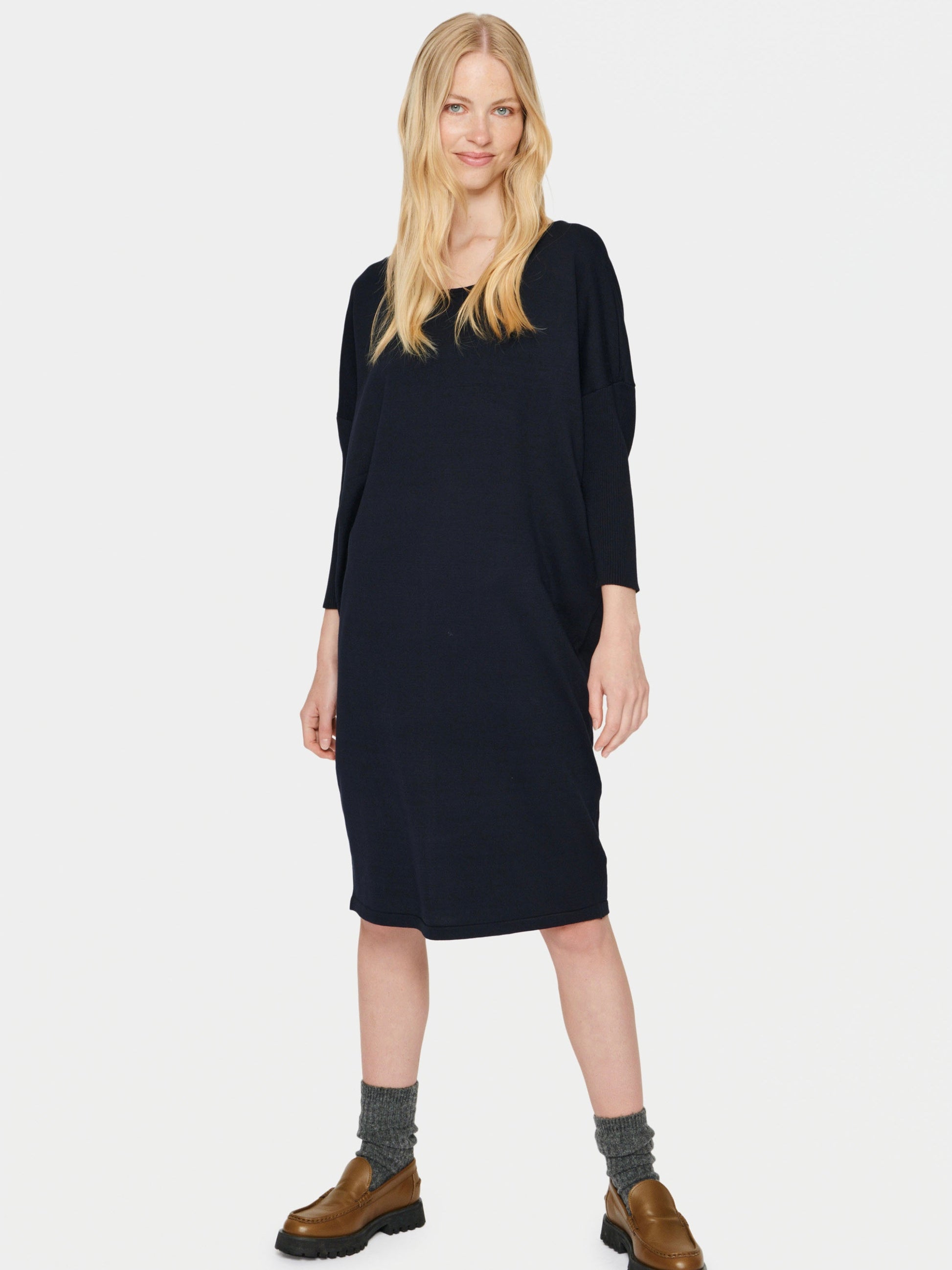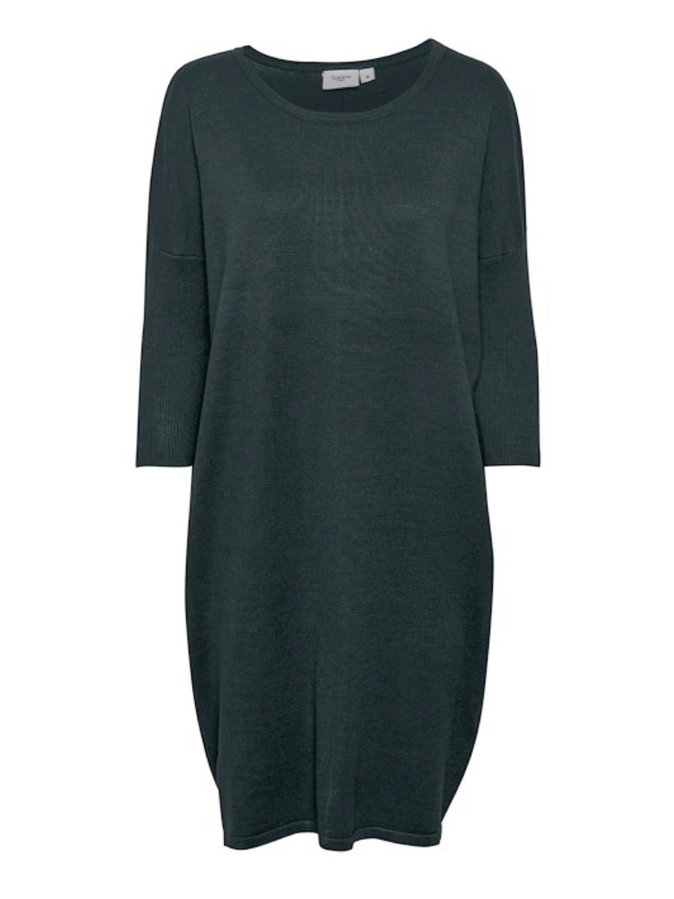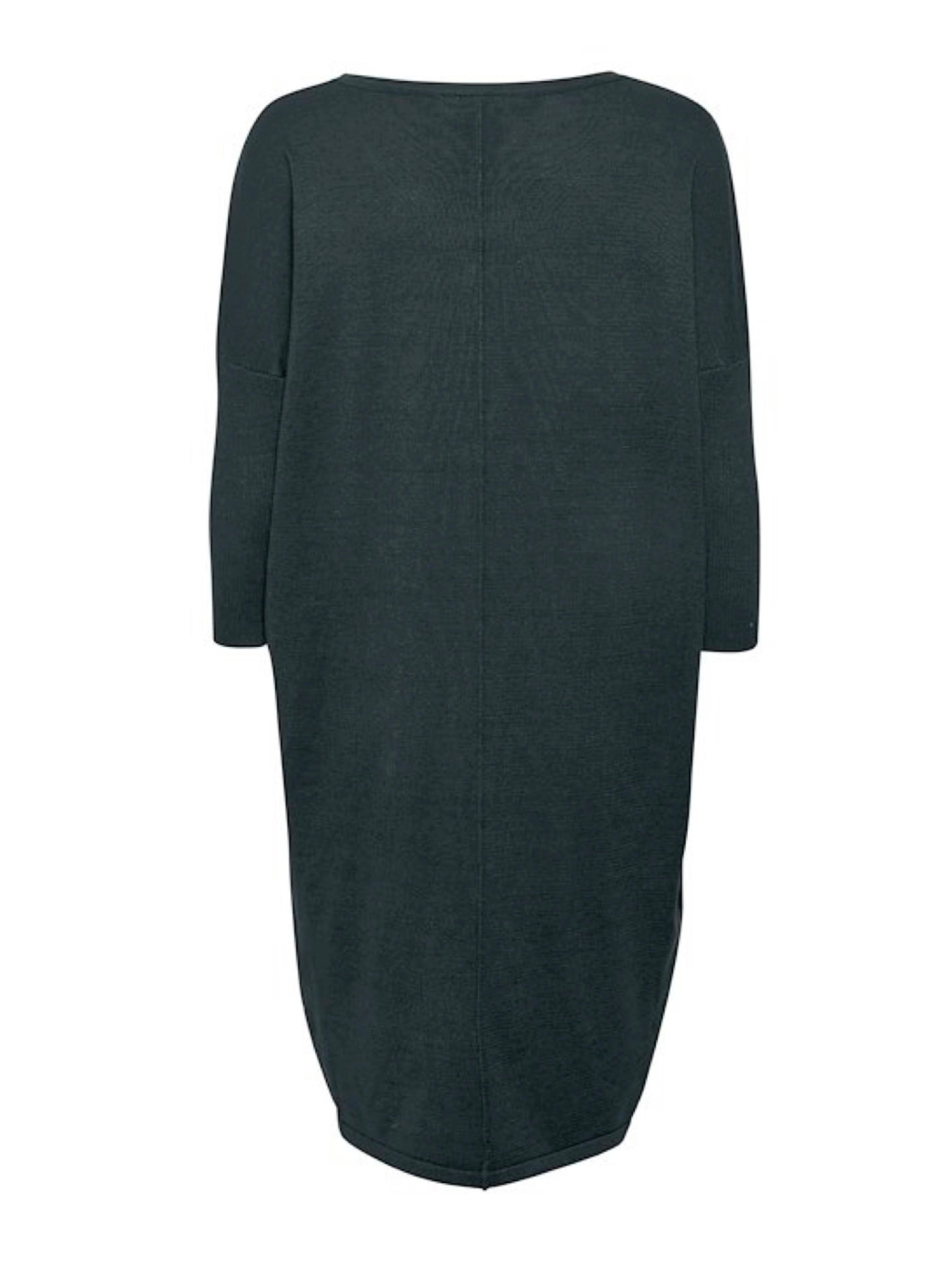 Strickkleid mit Rundhalskragen aus einer soften Viskosemischung. Im Fledermaus Style gearbeitet, Mit ünberschnittenen 3/4 Ärmeln und extrabreiten Rippenbündchen an den Ärmelabschlüssen. Weite Form, zum Saum schmaler zulaufend. Auch als Longpullover oder Tunika zu tragen.