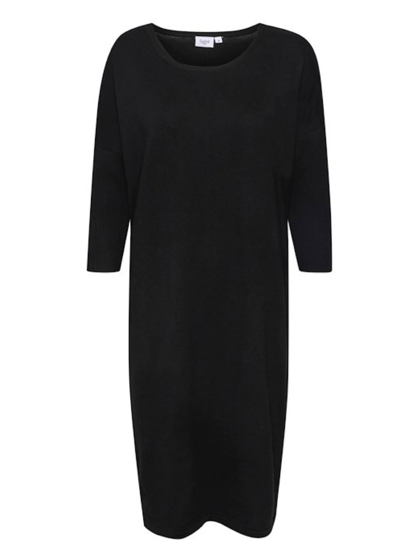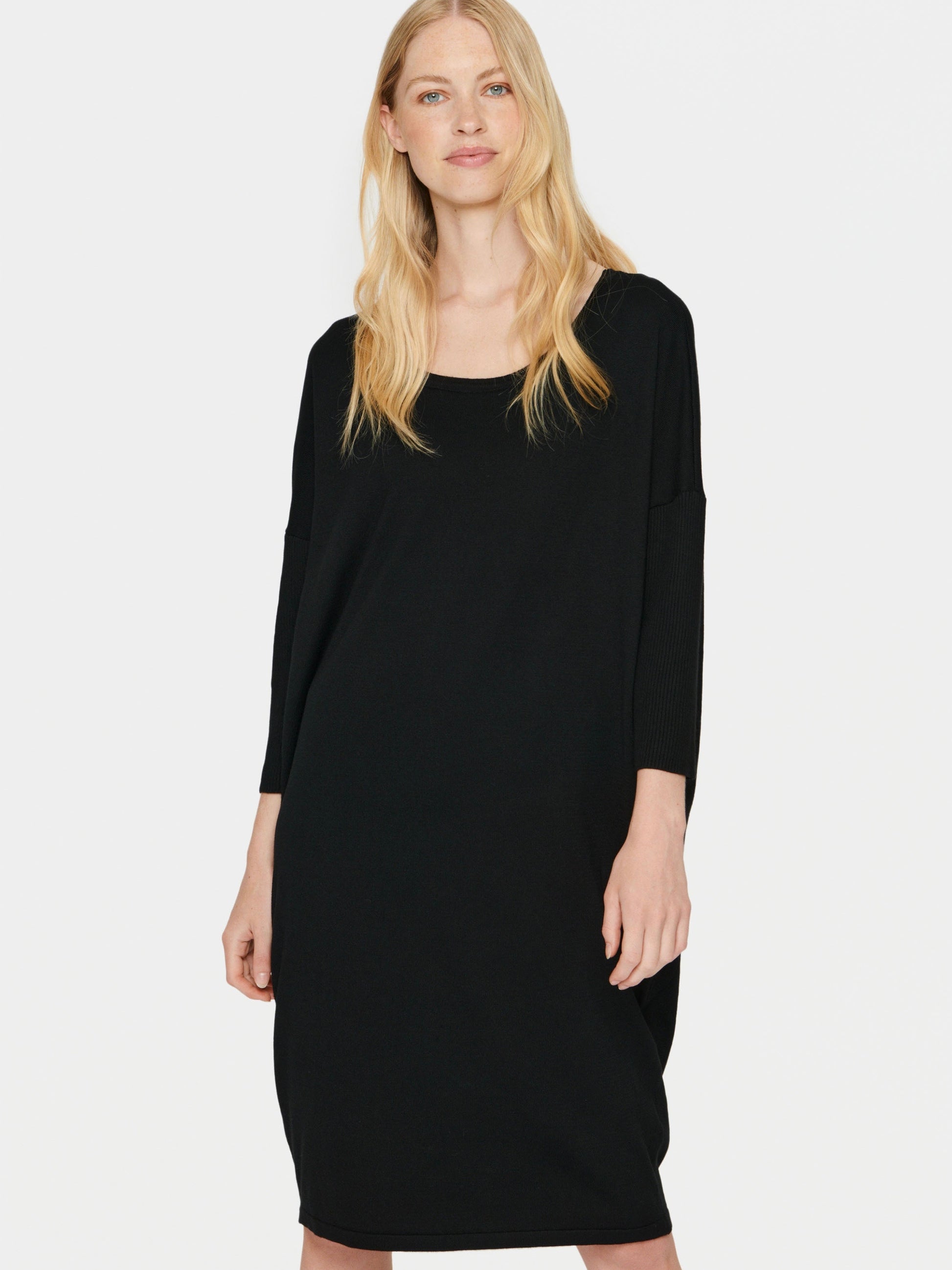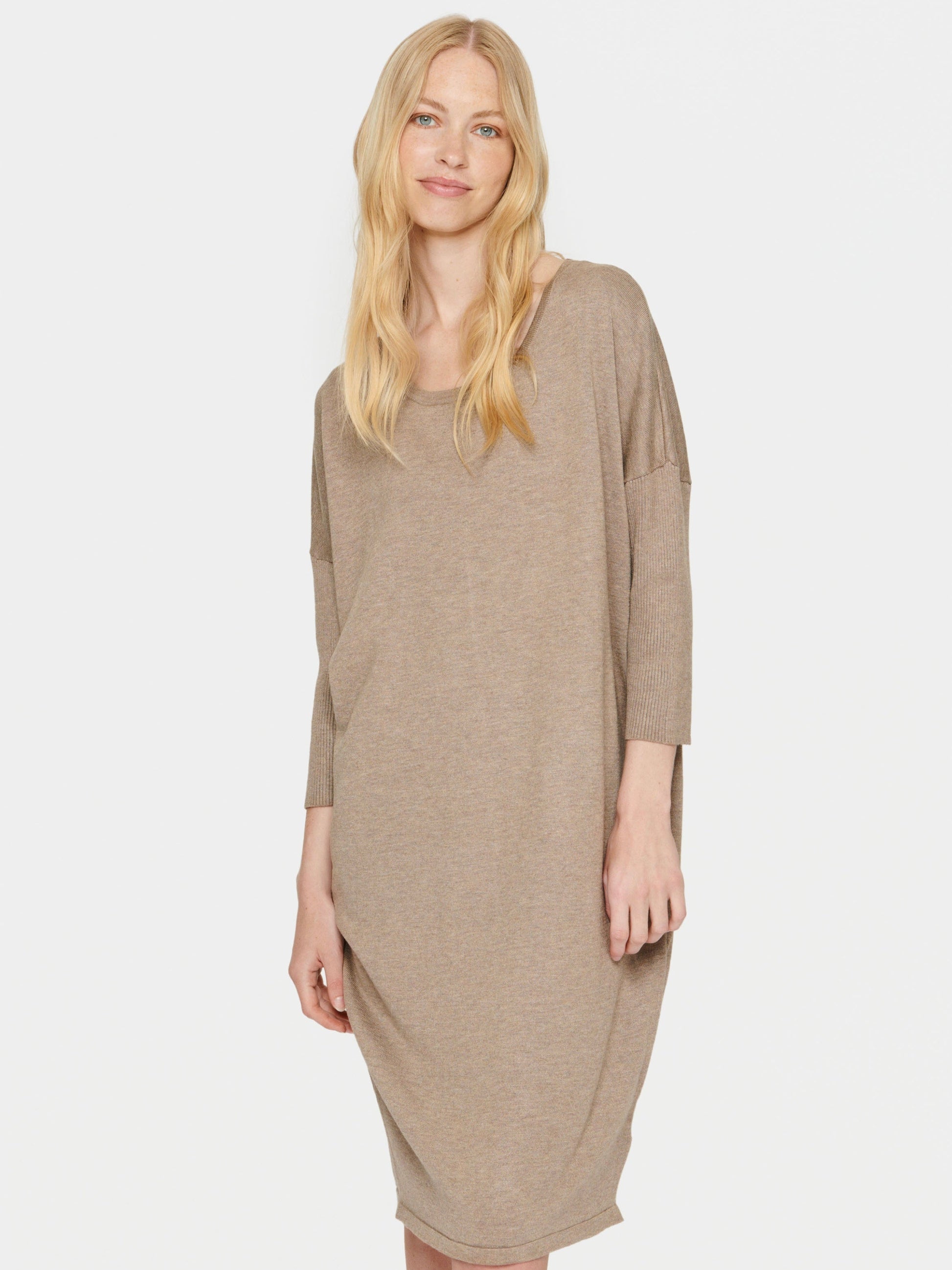 Strickkleid mit Rundhalskragen aus einer soften Viskosemischung. Im Fledermaus Style gearbeitet, Mit ünberschnittenen 3/4 Ärmeln und extrabreiten Rippenbündchen an den Ärmelabschlüssen. Weite Form, zum Saum schmaler zulaufend. Auch als Longpullover oder Tunika zu tragen.