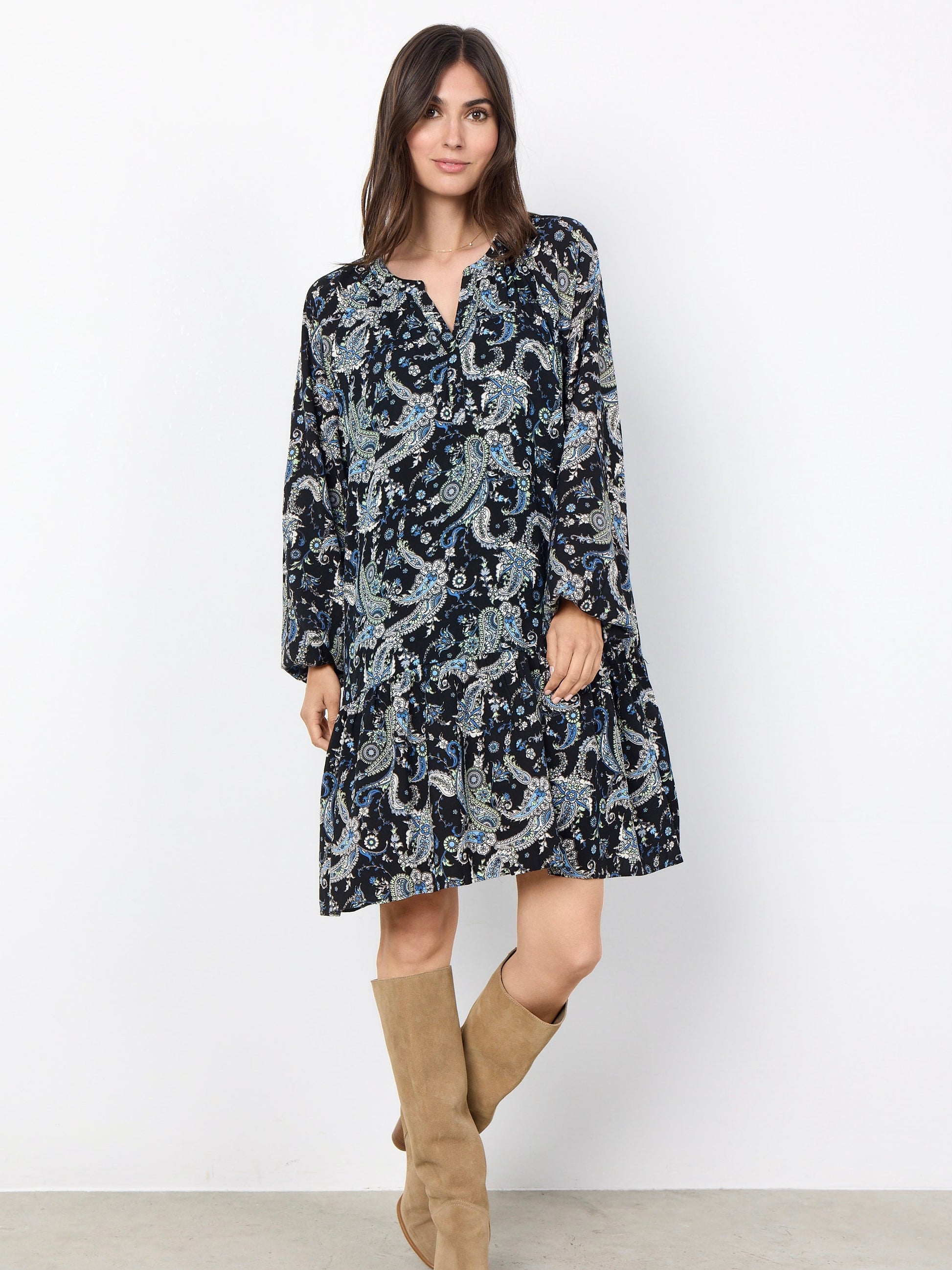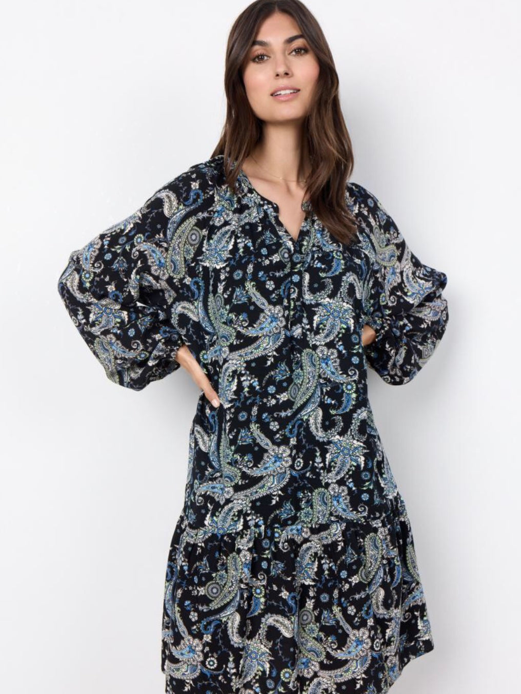 Stufenkleid SC-Alma 2 schwarz/hellblau/grün gemustert
