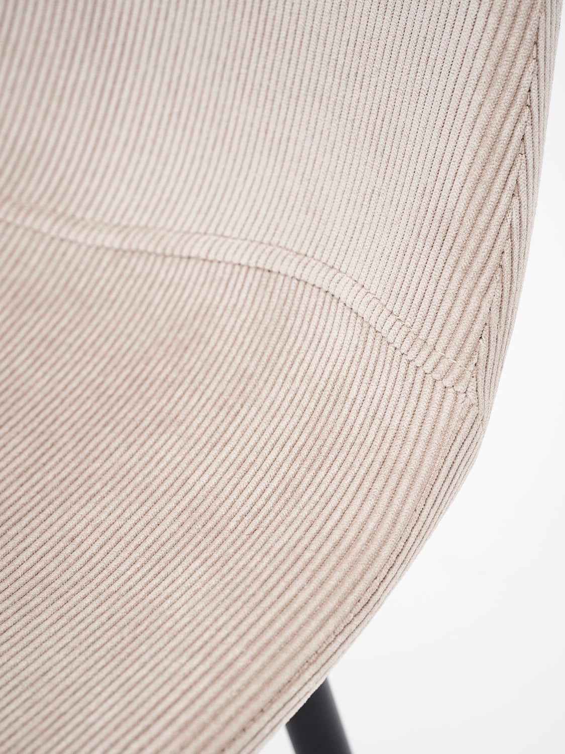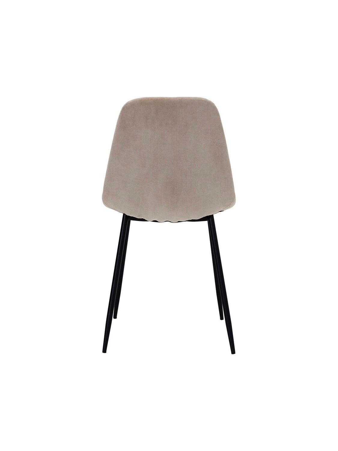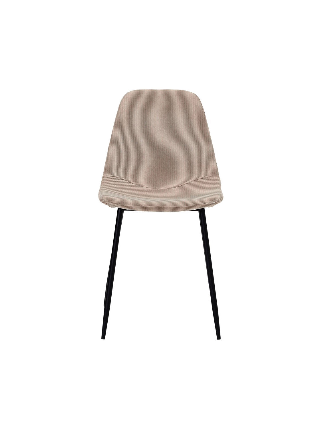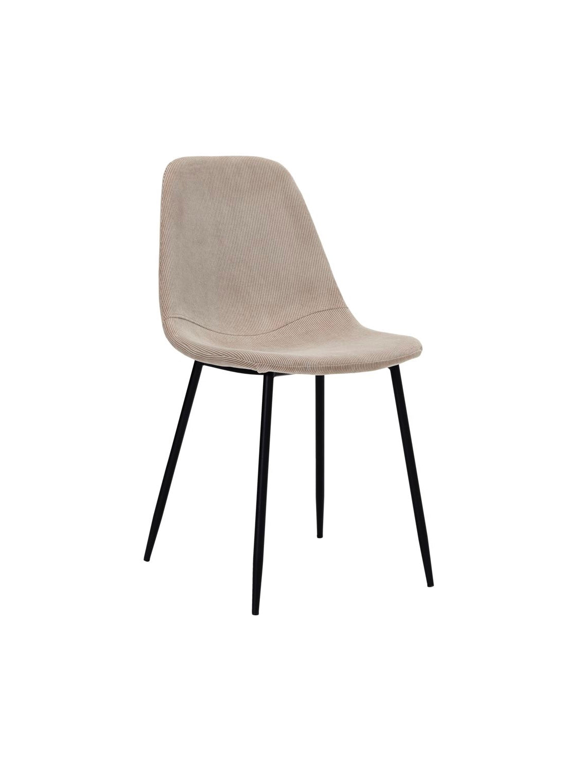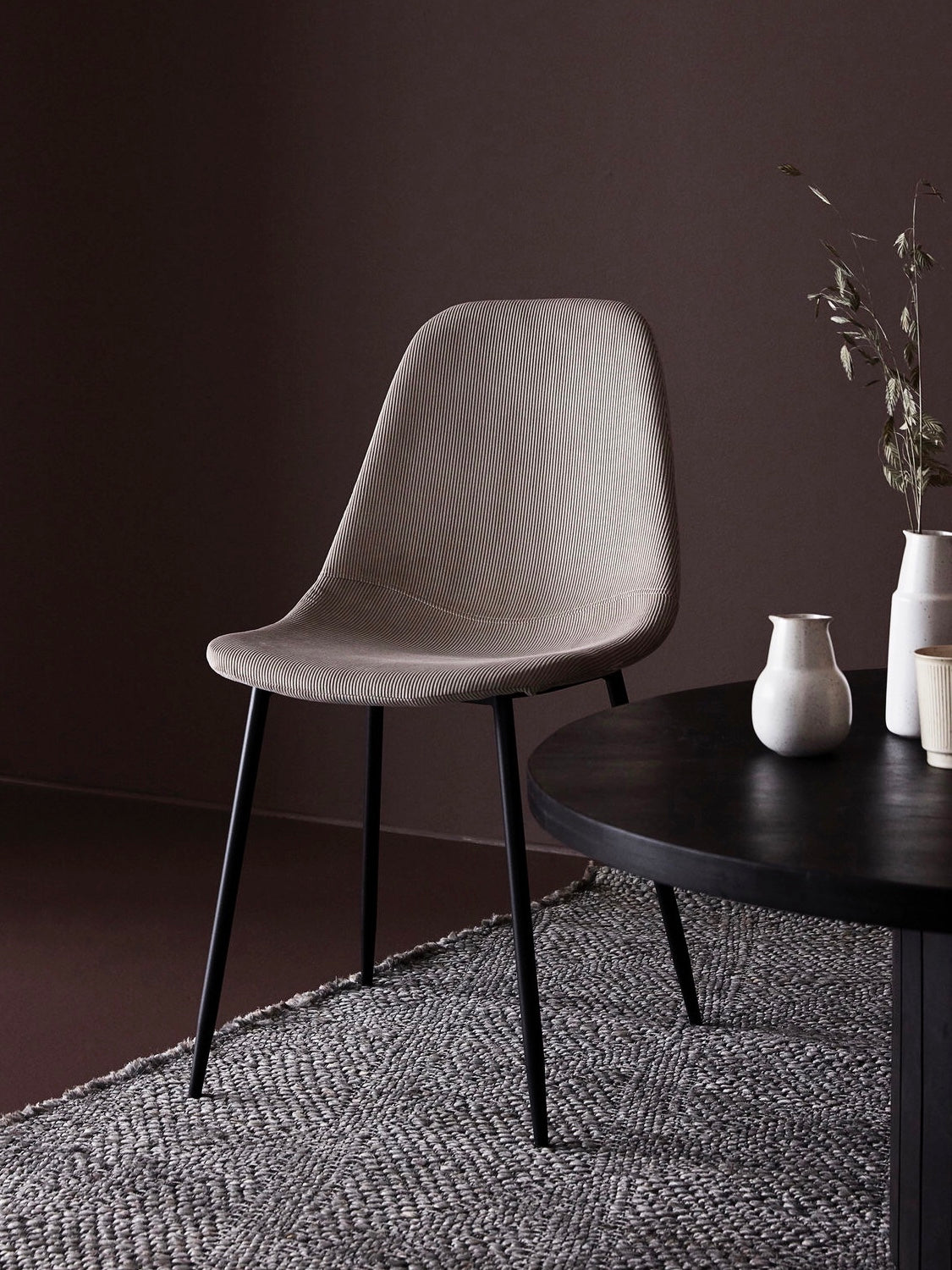 Stuhl ohne Armlehnen aus Cord und Stahl. Cord als Möbelbezug mag dir im ersten Augenblick ein wenig ungewohnt erscheinen. Allerdings muss man einfach zugeben, dass dieser gerippte Stoff unglaublich weich ist. Found von House Doctor ist der Beweis dafür, dass elegantes Design und unkonventionelle Stoffe Hand in Hand gehen können. Der Stuhl ist so geschnitten, dass du stundenlang bequem darauf sitzen kannst, ohne zu ermüden. Dank der zeitlosen Sandfarbe passt er zu jedem Tisch und Material. Mach Found zu deinem neuen Esszimmerstuhl oder Schreibtischstuhl.