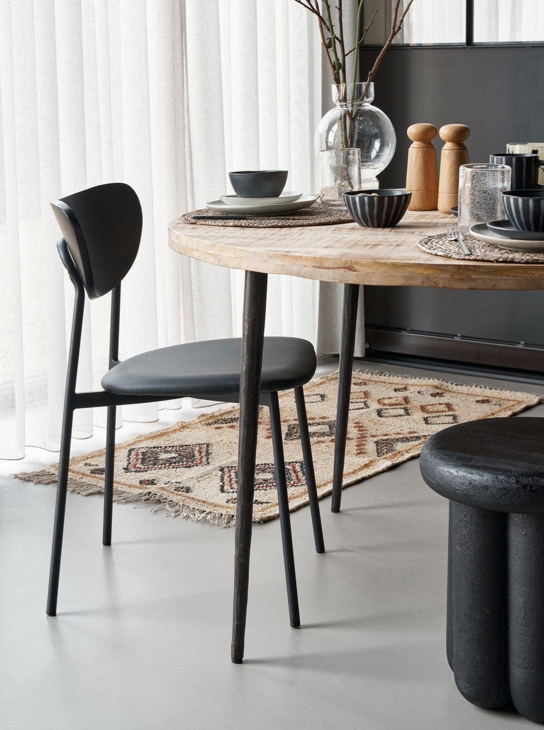 Mit der Kombination aus einem klassischen Look und modernen Linien wird dieser schwarze Stuhl garantiert in dein Esszimmer passen. Die Rückenlehne besteht aus Holz und bildet einen mühelosen Kontrast zum Ledersitz und dem leichten Stahlrahmen. Komfort und Stil treffen im Must-Stuhl aufeinander und werden festliche Abende mit Freunden noch vergnüglicher machen. Auch wenn du irgendwann deinen Esstisch austauschen solltest, wird dieser Stuhl stets stilvoll aussehen und er passt zu jedem Material.