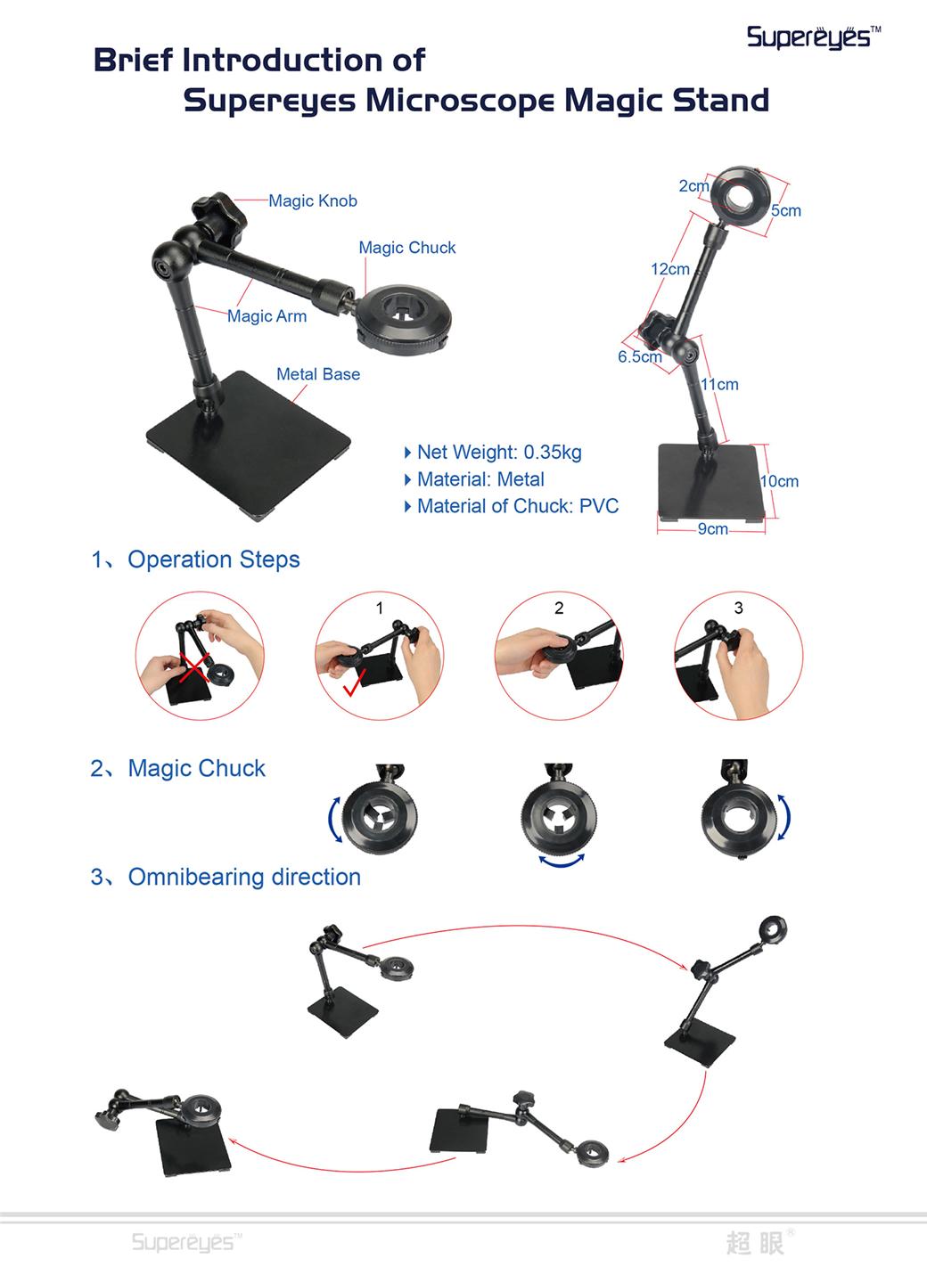 Supereyes Z004 Magic Universal Adjustable Rotating Stand for Handheld Digital Microscope Magnifer Metal Stand