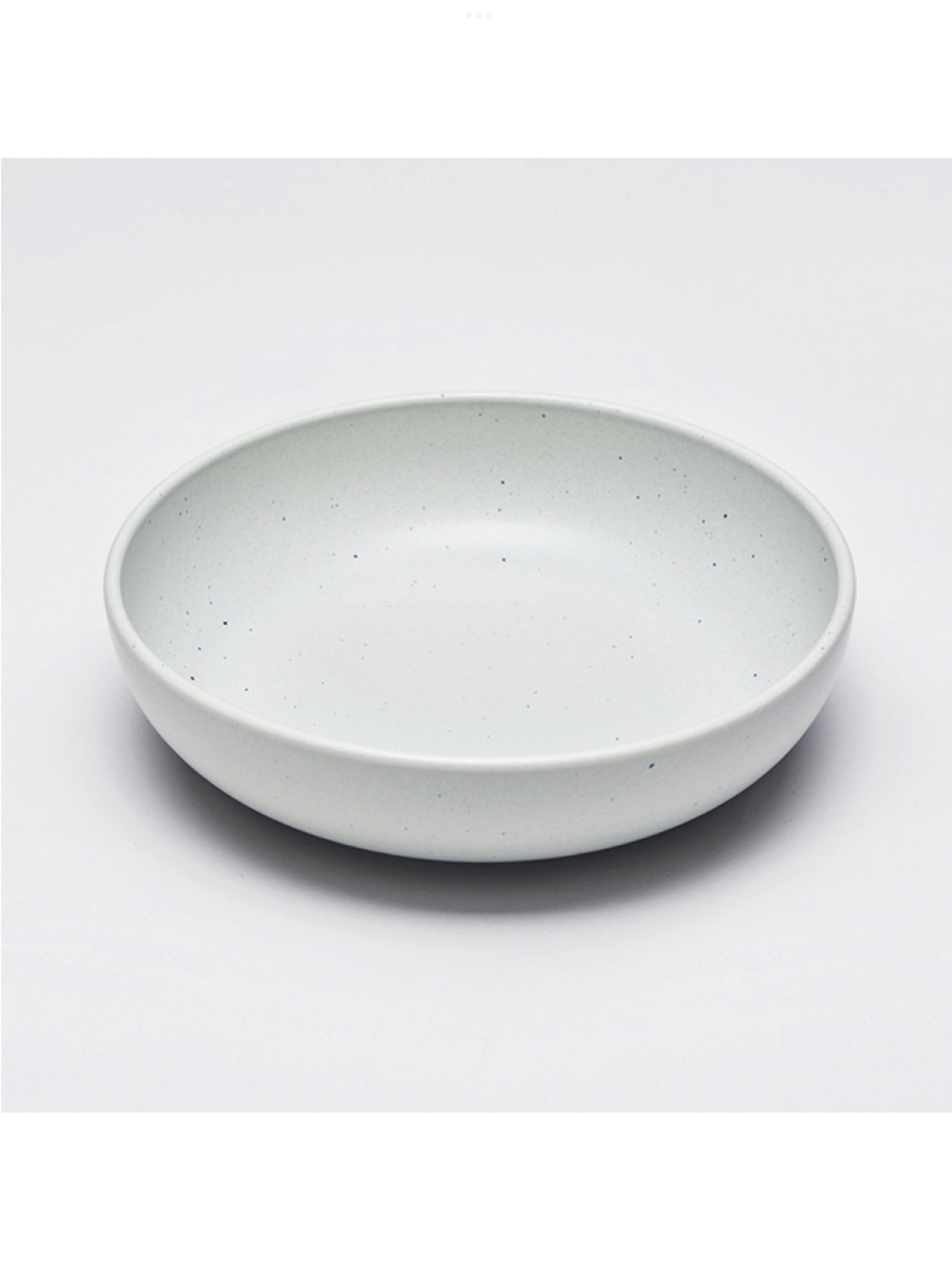 Die Suppenschale hat einen hohen schmalen Rand sowie eine leicht gesprenkelte und matt lasierte Oberfläche. Die Schale wird auch für Salate und Pasta Gerichte verwendet. Jedes Teil ist handgefertigt und fällt immer etwas anders aus. Weitere Teile der Serie LAND werden ebenfalls angeboten.