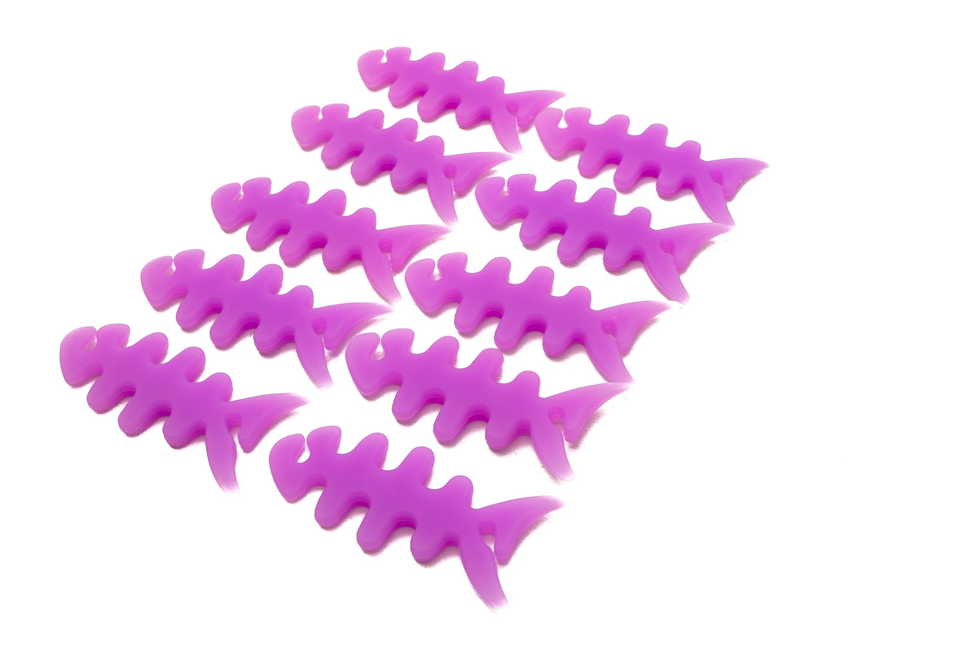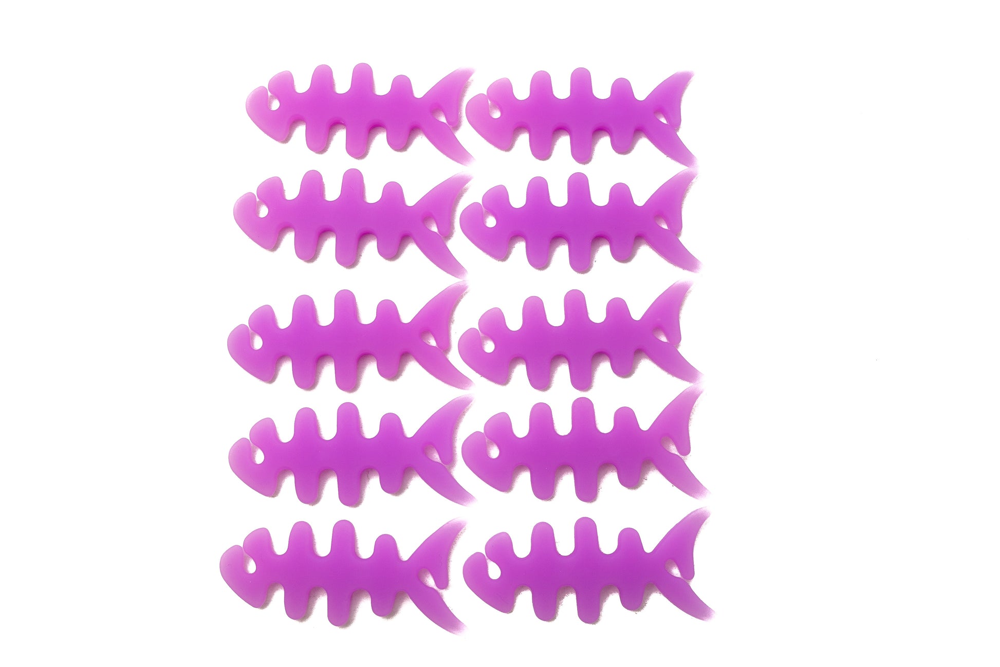 SYSTEM-S 10er Set Kabelmanager Wrap Kabelaufroller Fischform Silikon Aufwickler Kabelschutz in Lila