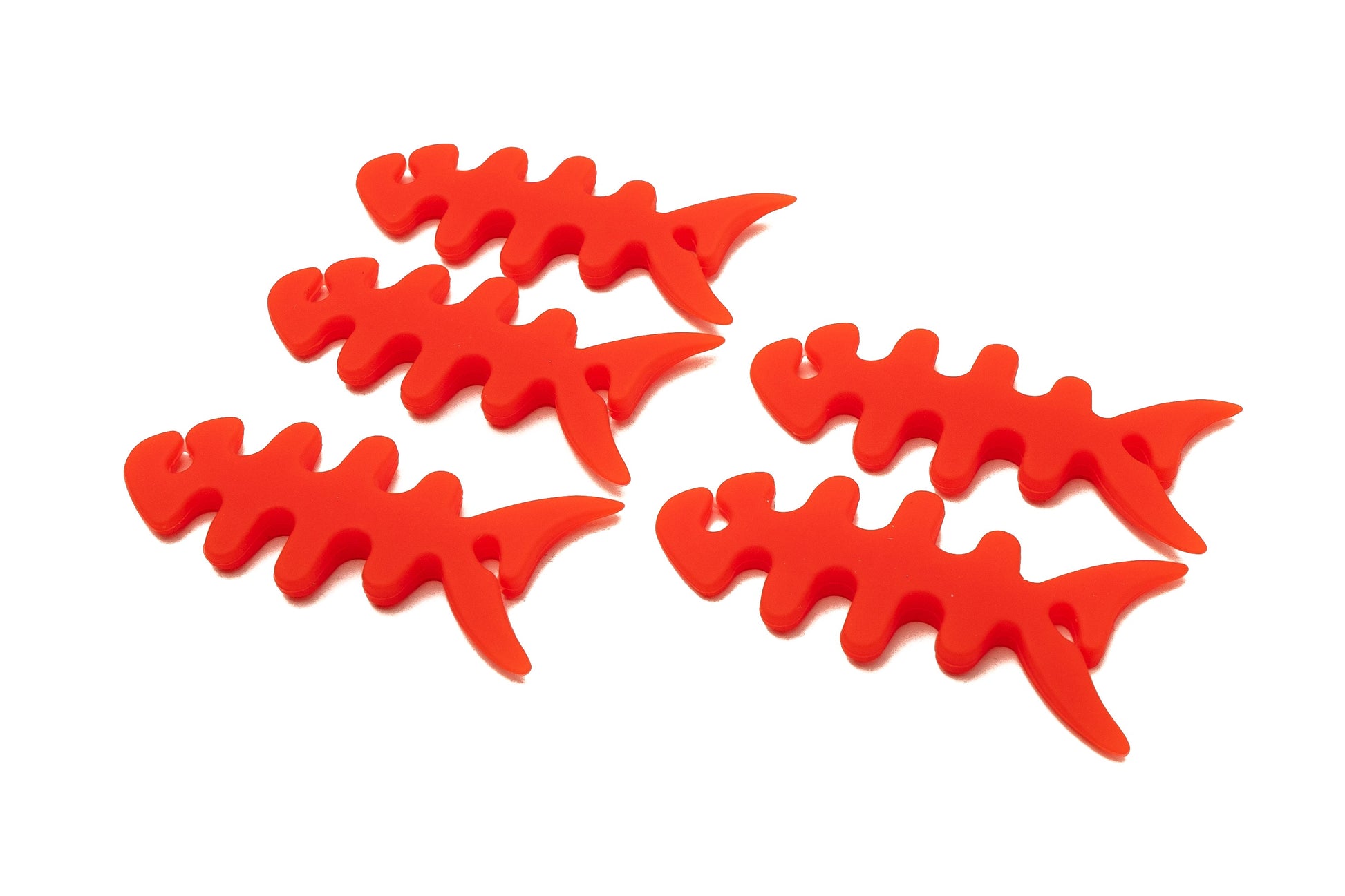 SYSTEM-S 5er Set Kabelmanager Wrap Kabelaufroller Fischform Silikon Aufwickler Kabelschutz in Rot