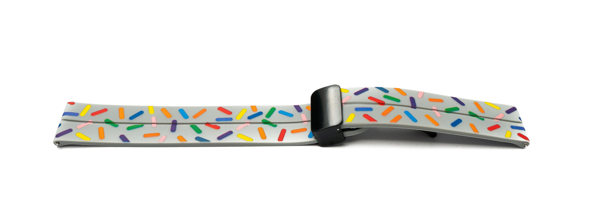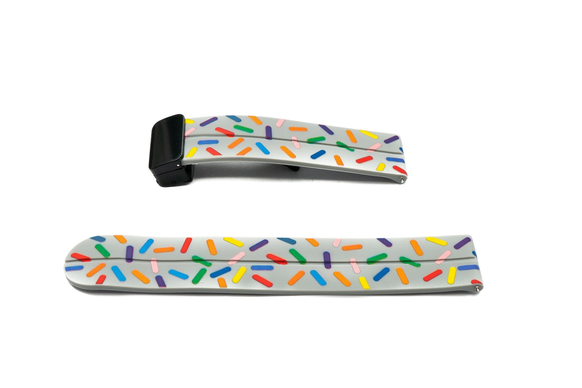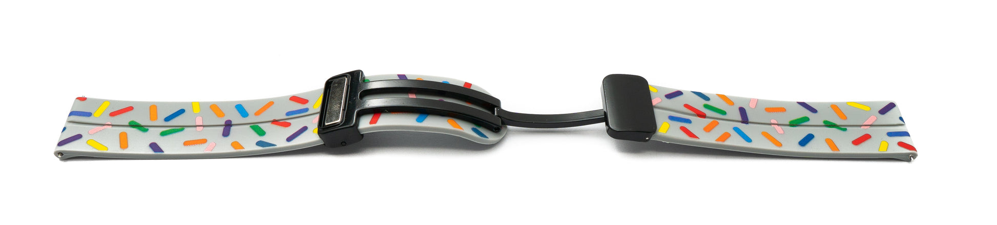 SYSTEM-S Armband 20 mm aus Silikon mit Kippfaltschließe für Smartwatch mit Streusel Aufdruck in Grau