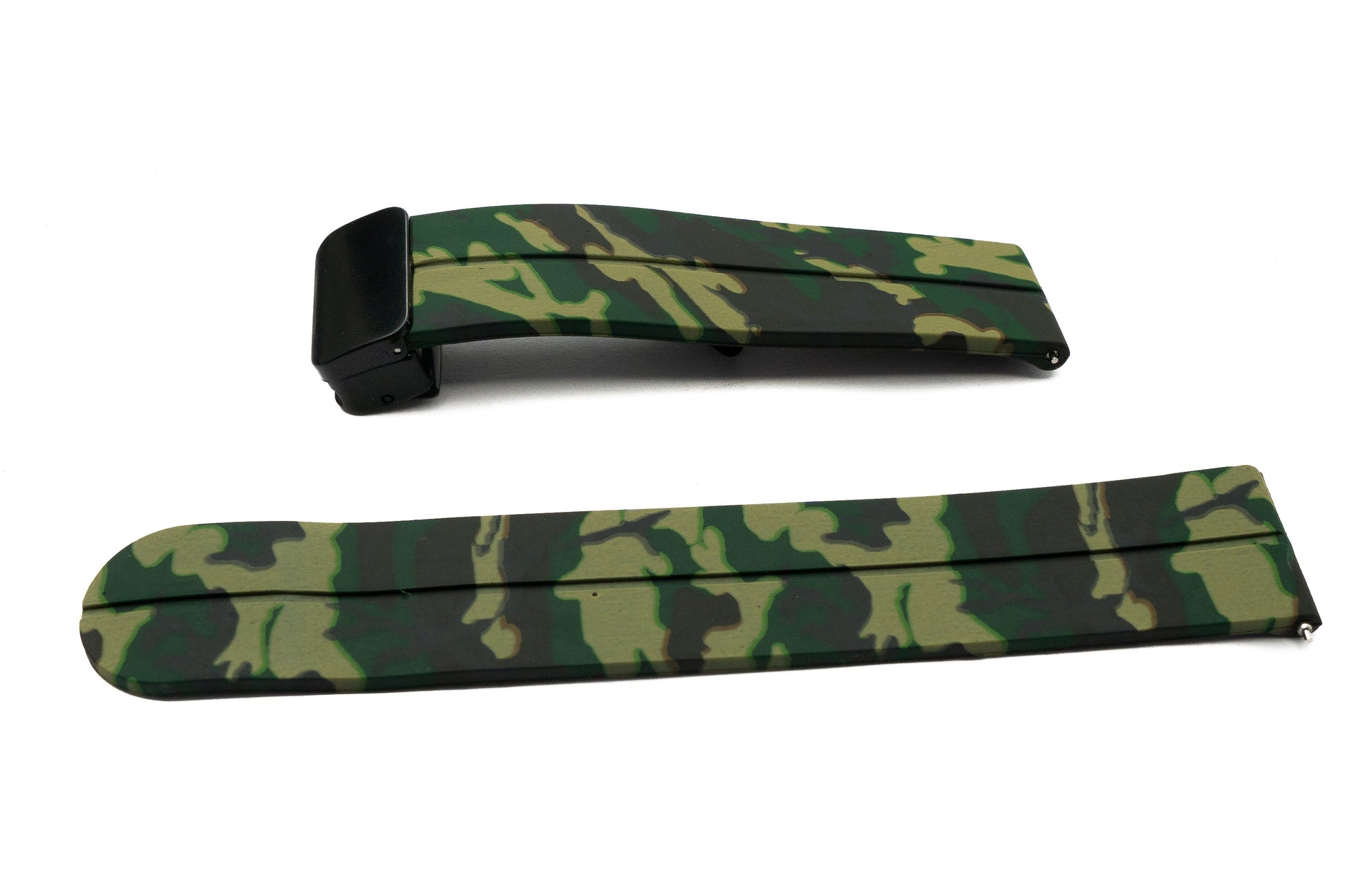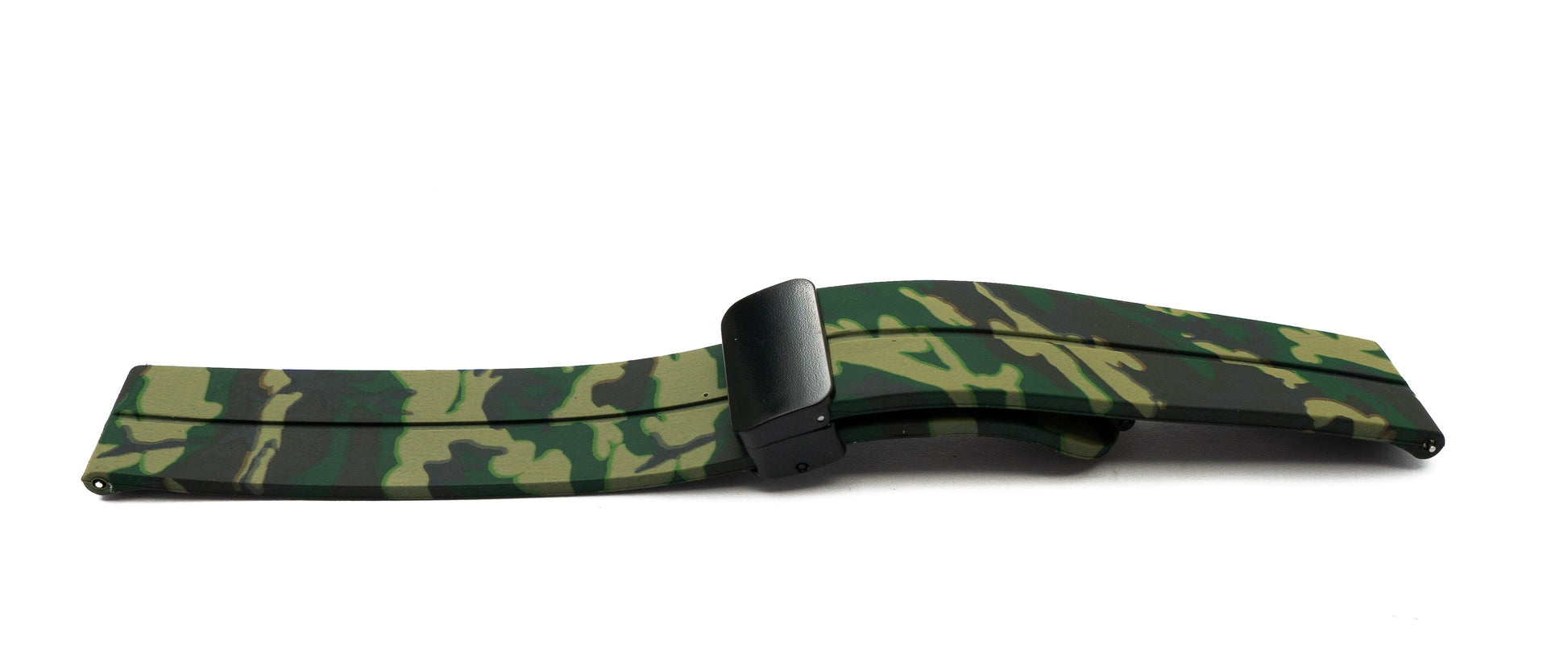 SYSTEM-S Armband 20 mm aus Silikon mit Kippfaltschließe für Smartwatch mit Tarn Aufdruck in Grün