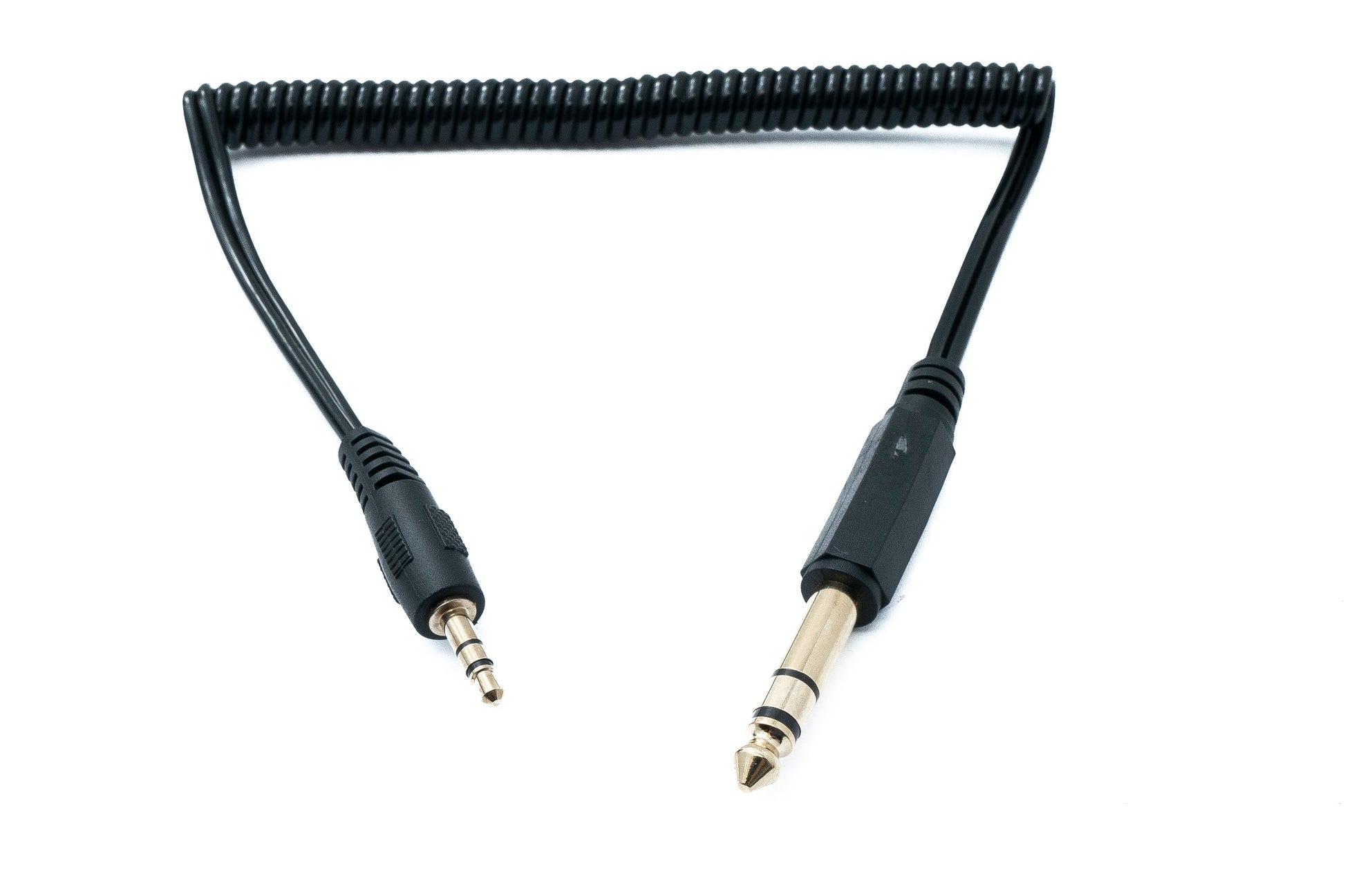 SYSTEM-S Audio Kabel 60 cm Stereo TRS 6.35 mm Klinke Stecker zu 3,5 mm Stecker Spirale