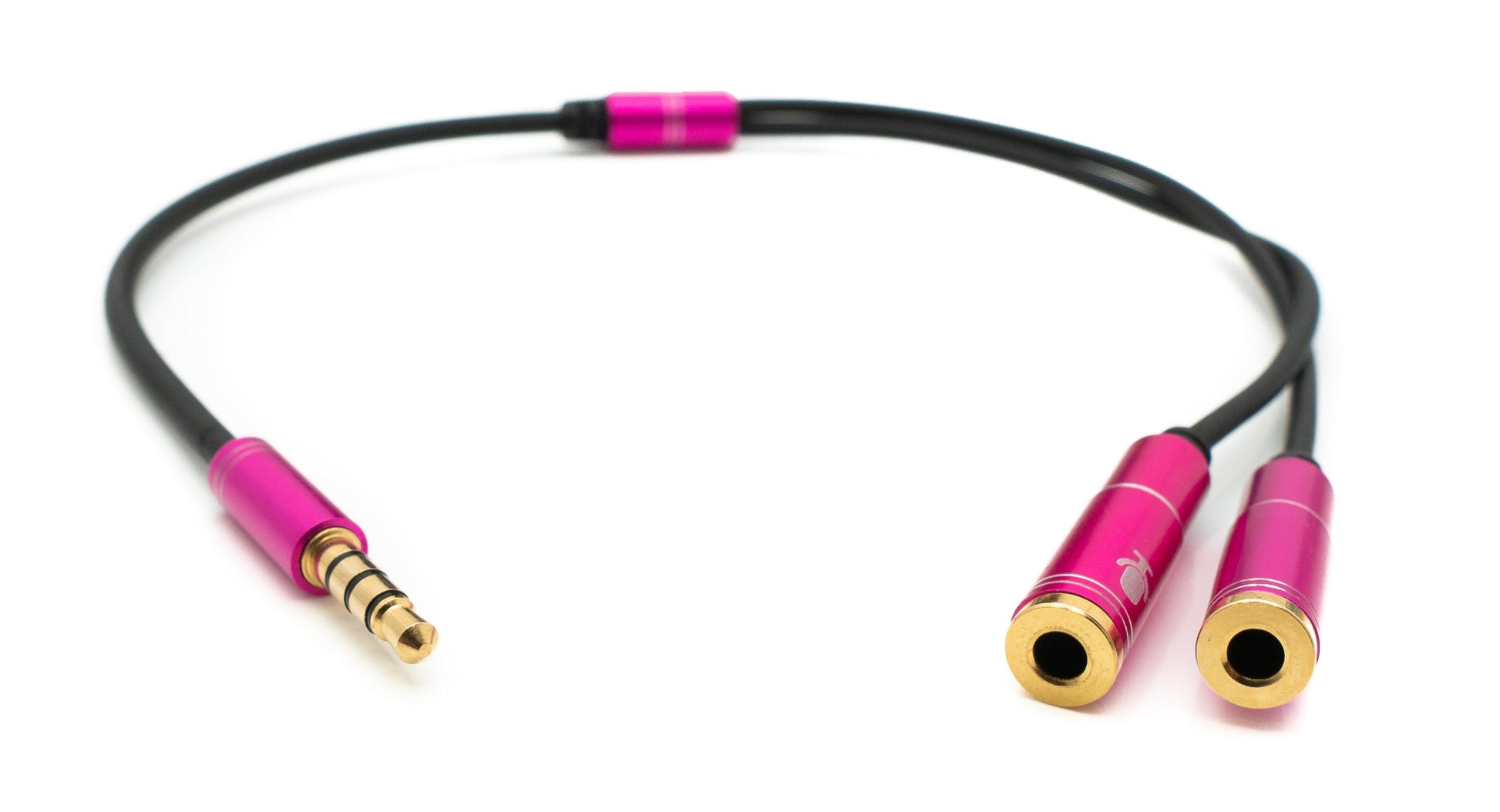 Ermöglicht die Verbindung von Headsets mit kombinierten Klinkenanschlüssen an Geräte mit getrennten Mikrofon- und Audioeingängen.