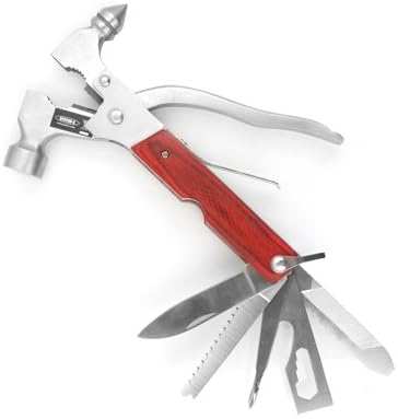 Vielseitiges Design: Dieses handliche Multi-Werkzeug vereint eine Vielzahl von Funktionen, die für Camping-Abenteuer unverzichtbar sind. Es umfasst einen Hammer, ein Nagelzieheisen, verschiedene Zangen (einschließlich einer Abisolierzange), Schneidwerkzeuge, Kreuz- und Schlitzschraubendreher, eine Säge, eine Feile, einen Dosenöffner sowie einen Schlüsselring für zusätzliche Bequemlichkeit.